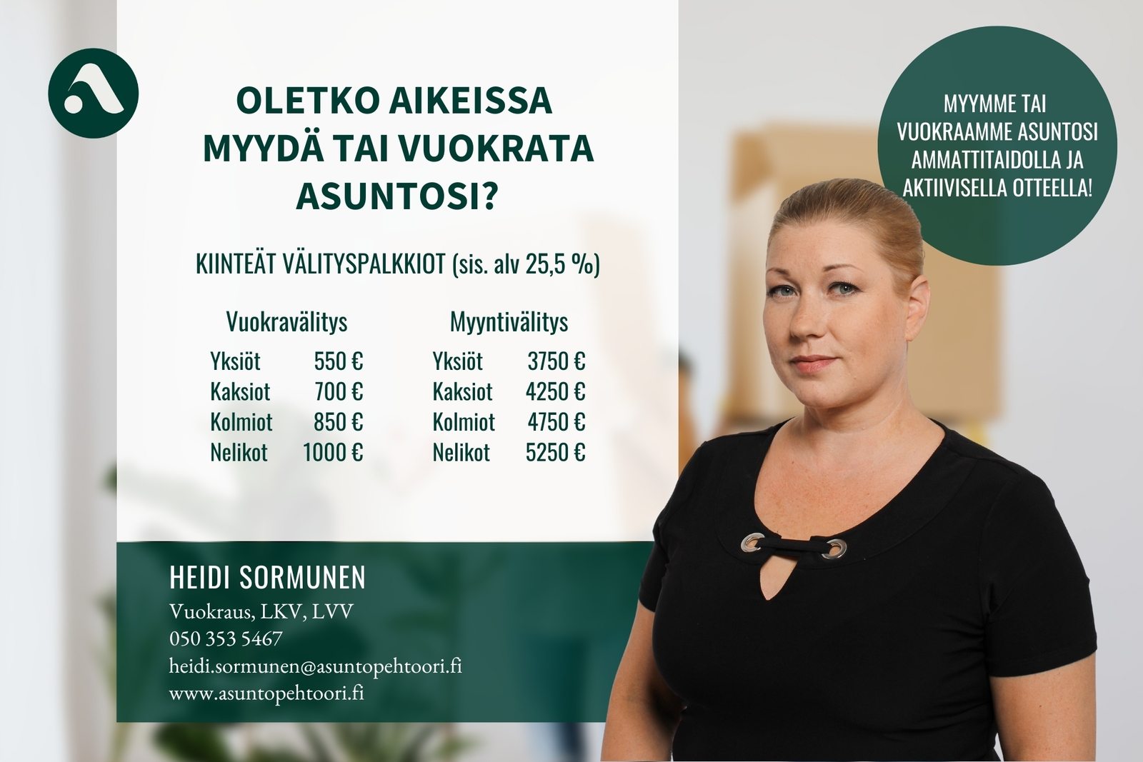Täytä lomake ja välittäjä on sinuun yhteydessä mahdollisimman pian näytön sopimiseksi.