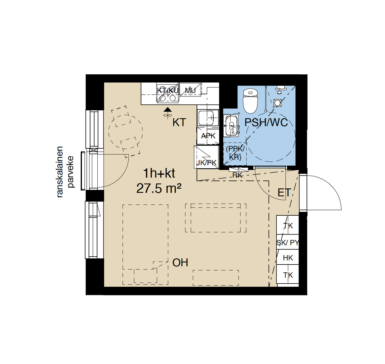 Huoneiston kokoonpano 1h + kt + kph + ransk. parv.