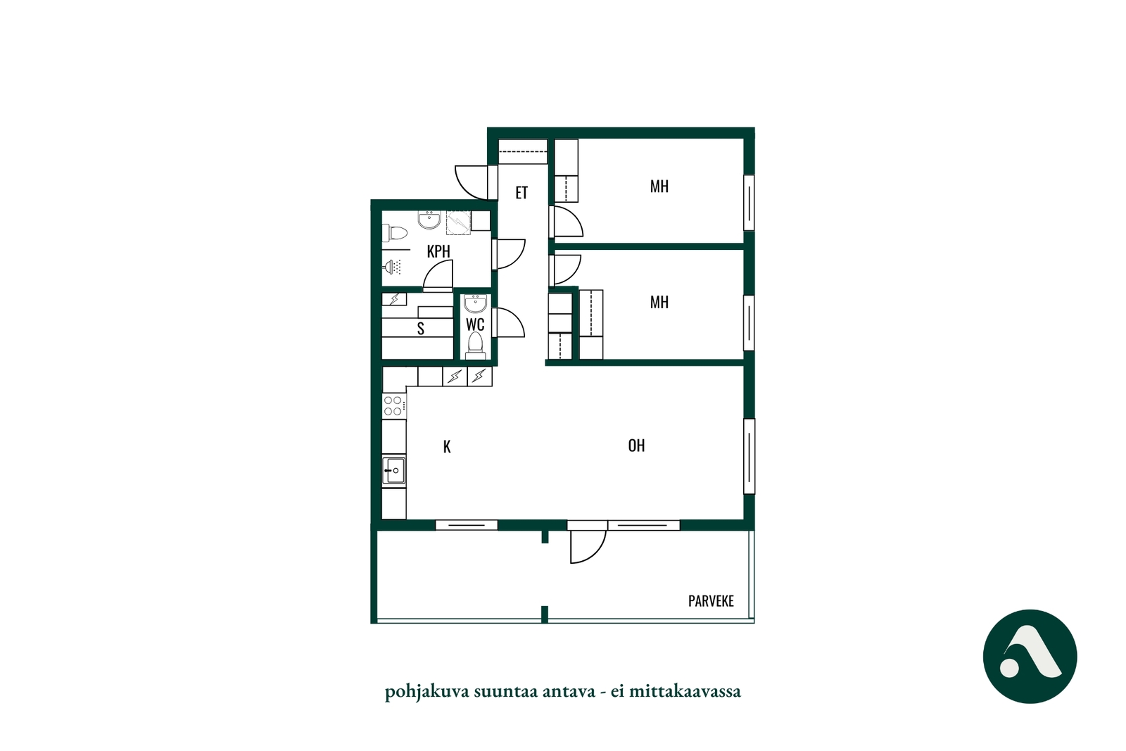 Huoneiston kokoonpano | 3h, k, kph, s, parveke |