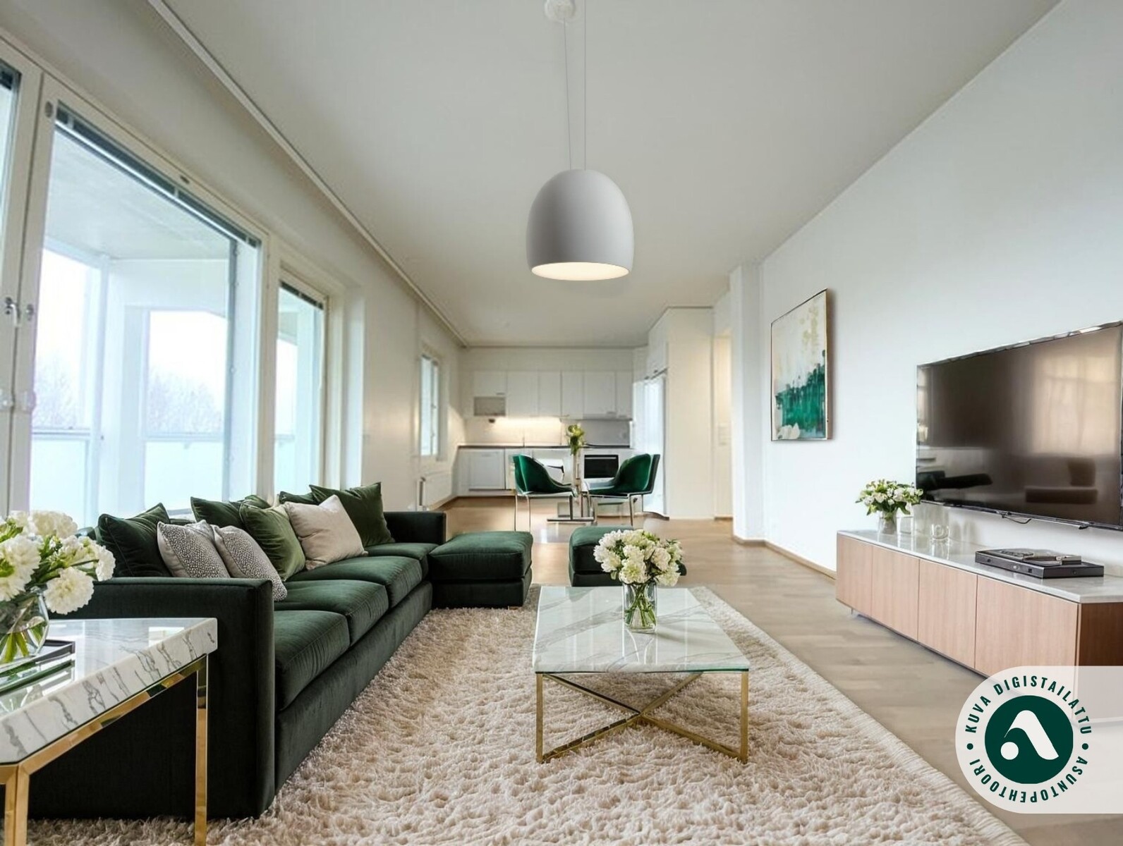 Tästä modernista asunnosta löytyy kaikki tarvittava ja lisätilaa tuo todella tilava lasitettu parveke. Lattiamateriaalina on jalalle mukava parketti. Keittiö on täysin koneistettu ja kylpyhuone tyylikkäästi laatoitettu.