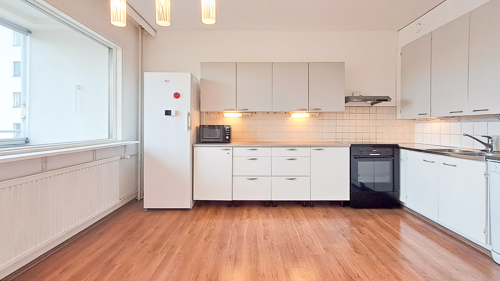 Kyseessä on valoisa kulmahuoneisto, jossa on tilavat huoneet sekä erillinen wc. Keittiössä on reilusti kaappi- ja työskentelytilaa. Kylpyhuoneessa tilaa vaikka pesutornille. Asunto sijaitsee hissitalon kuudennessa kerroksessa.
