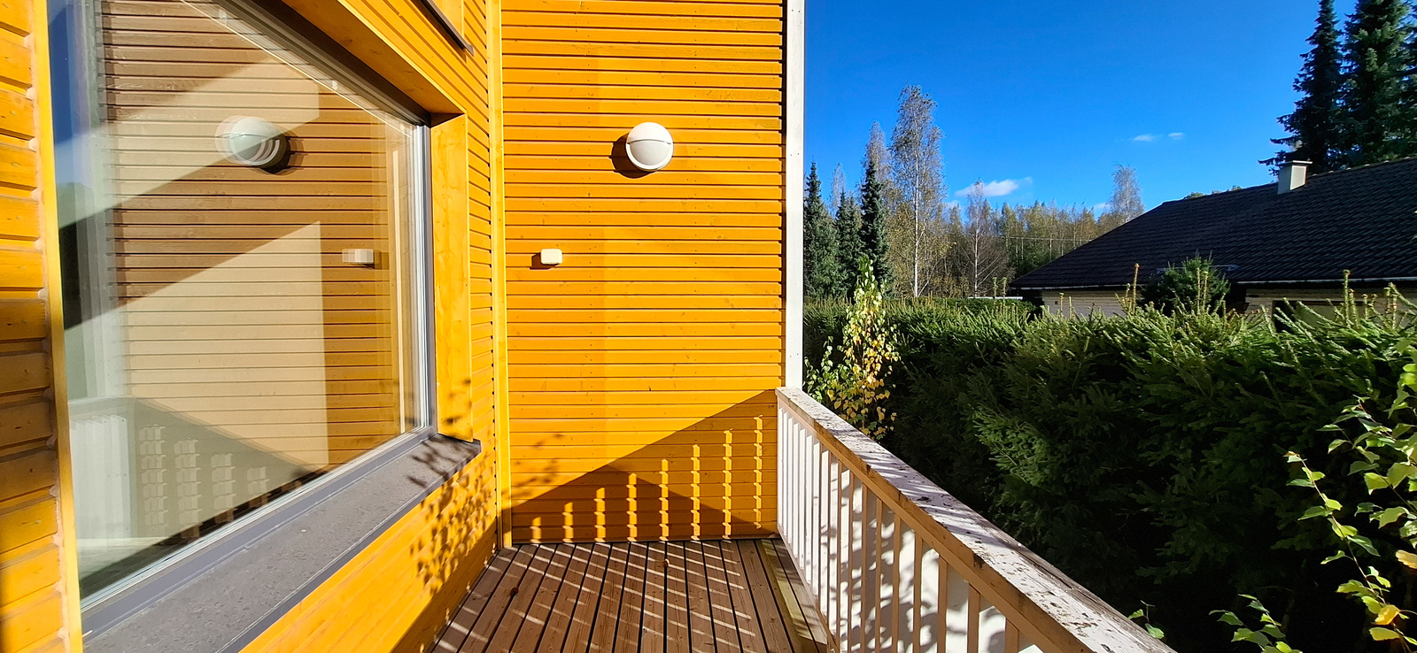Asunnon kruunaa oma koko huoneiston levyinen terassi ja piha-alue. Huoneistokohtainen varasto sijaitsee kätevästi ulko-oven vieressä.