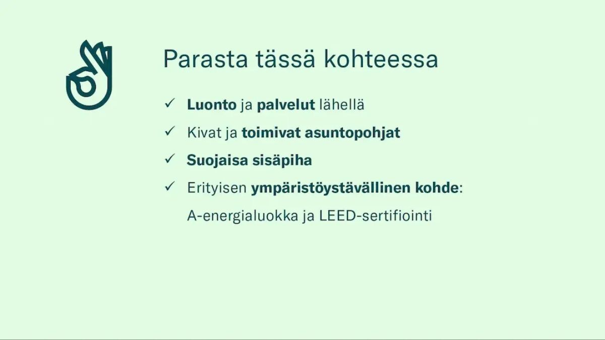 Tämä hurmaava päätykolmio sopii pohjaratkaisultaan täydellisesti esimerkiksi pariskunnalle, kämppiksille tai perheelle. Asunto on moderni sekä valoisa. Lisäksi kodissa on valmiiksi asennetut sälekaihtimet sekä verhokiskot. Lattiamateriaalina on kestävä tammilaminaatti ja seinät ovat valkoiset.