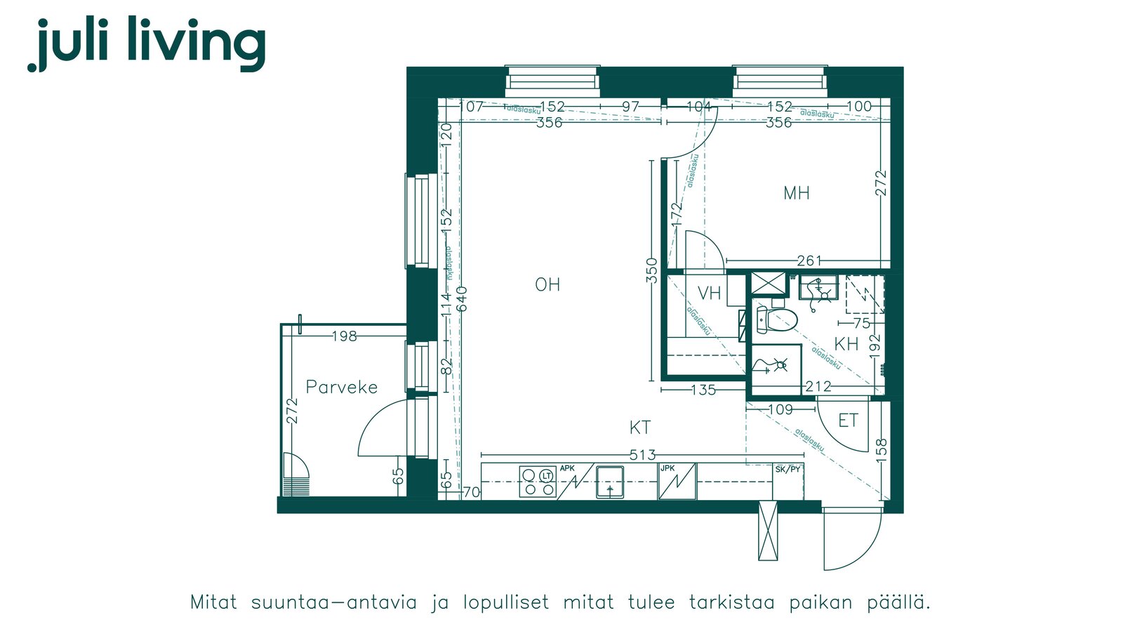 Kuvat ovat suuntaa-antavia havainnekuvia ja valokuvat voivat olla vastaavasta asunnosta toisessa rapussa, kerroksessa tai pohjan peilikuvasta – tutustuthan pohjaratkaisuun huolellisesti. Asunto vuokrataan kalustamattomana.
