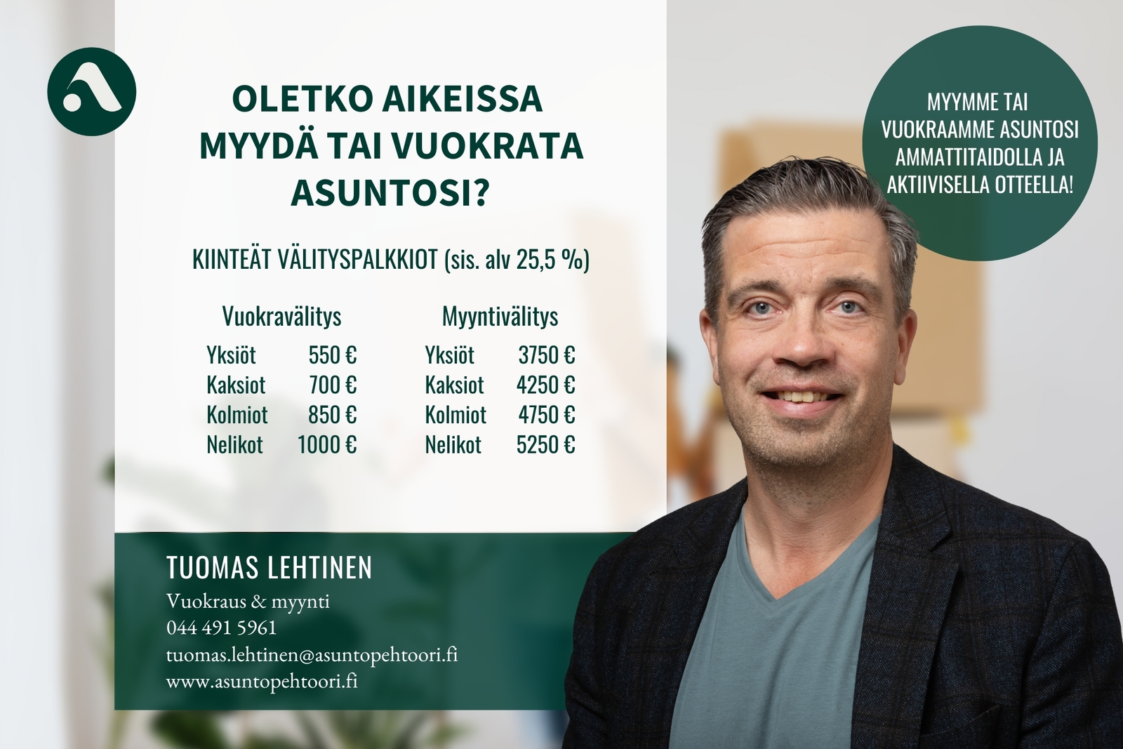 Tarjoamme myös Huolenpitopalvelua täysin avaimet käteen periaatteella. (www.asuntopehtoori.fi/huolenpitopalvelu/)