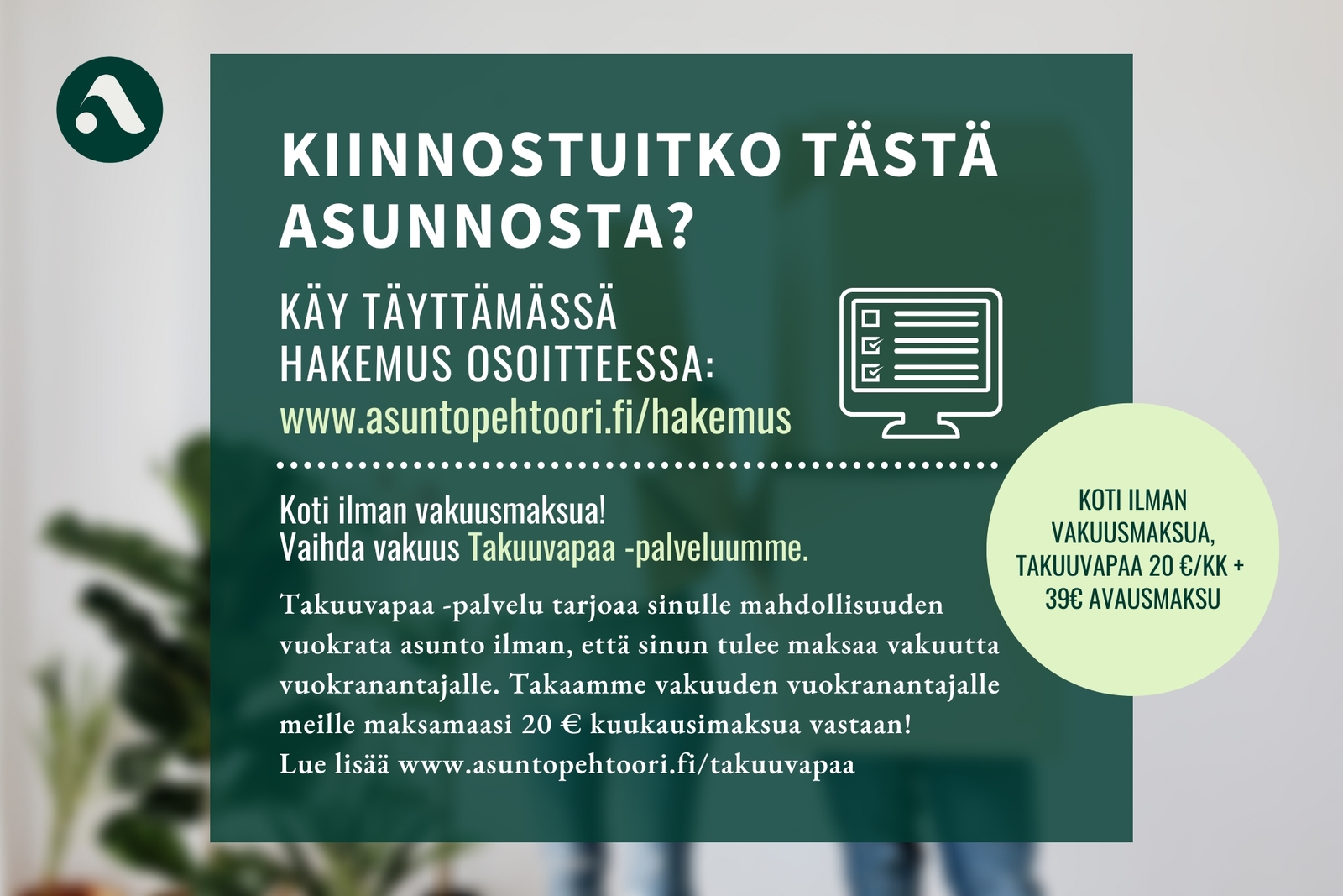 Mikäli kiinnostuit, ole hyvä ja täytä hakemus: www.asuntopehtoori.fi/hakemus