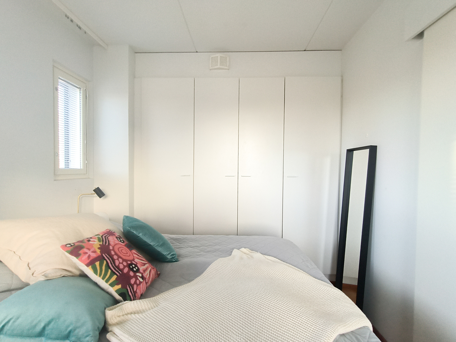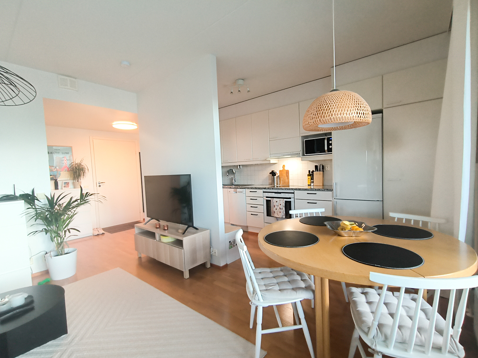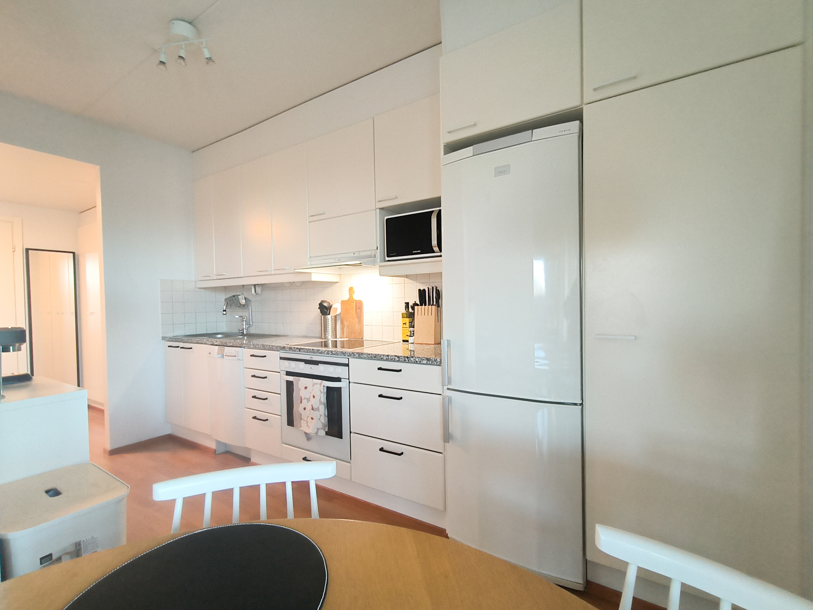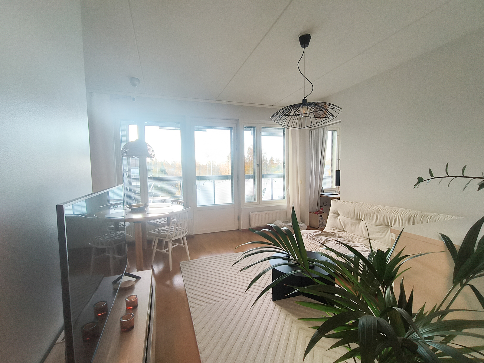 Tämän hyväkuntoisen ja valoisan kodin pohjaratkaisu on toimiva ja helposti kalustettavissa. Keittiössä on mukavasti säilytystilaa ja kaikki tarvittavat kodinkoneet sujuvaan arkeen. Seurustelulle ja yhdessäololle on hyvin tilaa olohuoneen puolella. Makuuhuoneeseen on mahdollista sijoittaa sängyn lisäksi etätyöpiste. Vaatteille säilytystilaa on runsaasti makuuhuoneen ja eteisen kaapeissa ja huoneistolle kuuluu lämmin häkkivarasto. Kylpyhuone on erittäin tilava ja oman saunan löylyistä voit nauttia vaikka päivittäin. Asunnon kruunaa iso lasitettu parveke esteettömin sisäpihan näkymin.