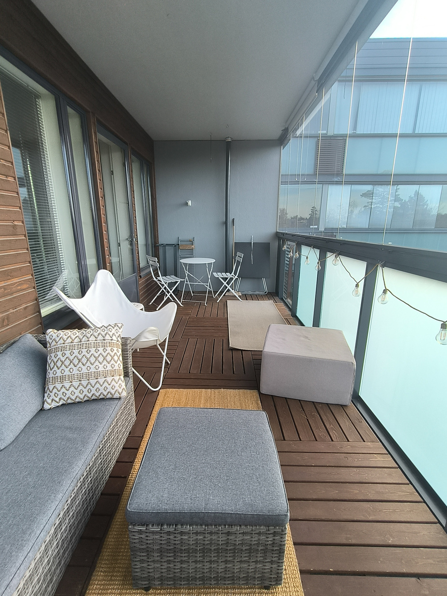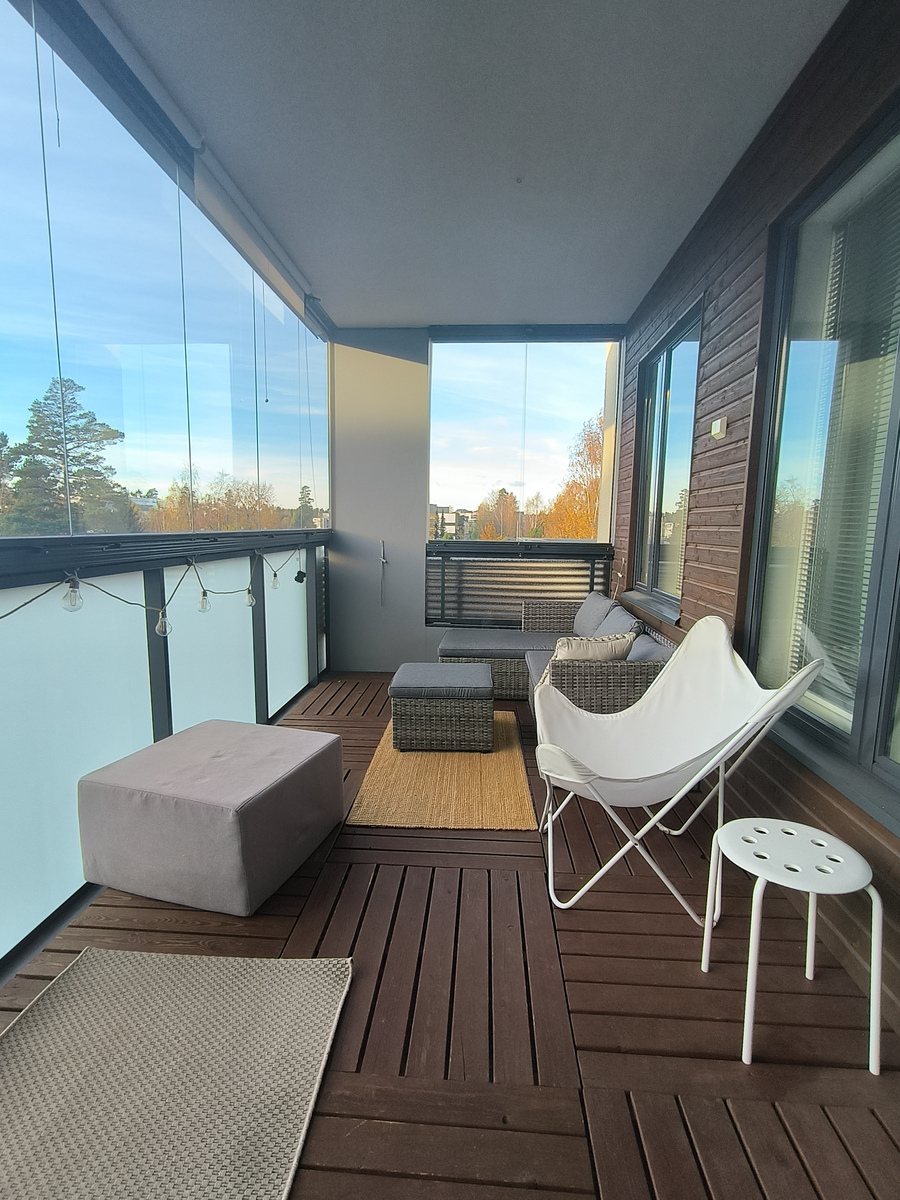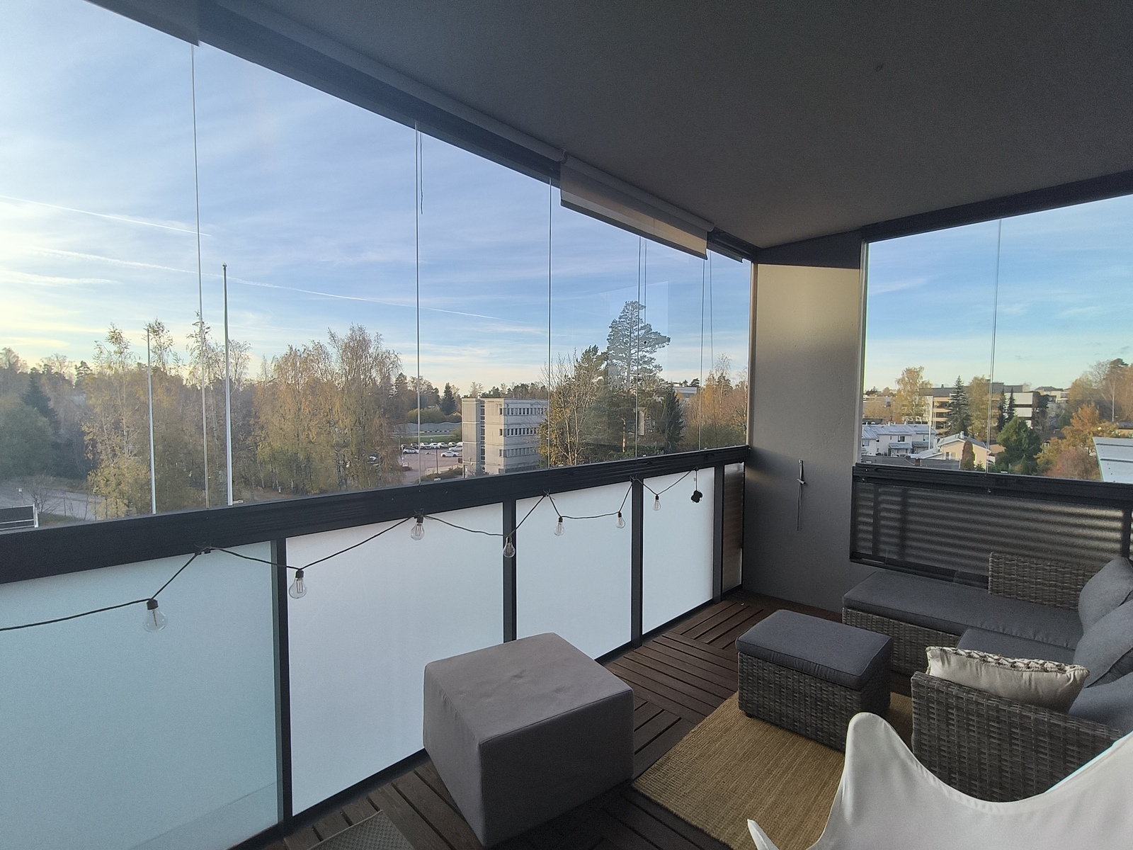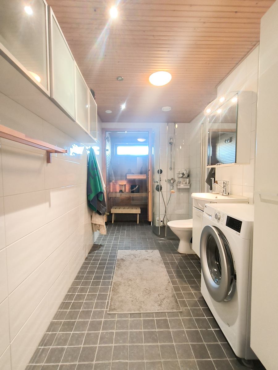 Tämän hyväkuntoisen ja valoisan kodin pohjaratkaisu on toimiva ja helposti kalustettavissa. Keittiössä on mukavasti säilytystilaa ja kaikki tarvittavat kodinkoneet sujuvaan arkeen. Seurustelulle ja yhdessäololle on hyvin tilaa olohuoneen puolella. Makuuhuoneeseen on mahdollista sijoittaa sängyn lisäksi etätyöpiste. Vaatteille säilytystilaa on runsaasti makuuhuoneen ja eteisen kaapeissa ja huoneistolle kuuluu lämmin häkkivarasto. Kylpyhuone on erittäin tilava ja oman saunan löylyistä voit nauttia vaikka päivittäin. Asunnon kruunaa iso lasitettu parveke esteettömin sisäpihan näkymin.
