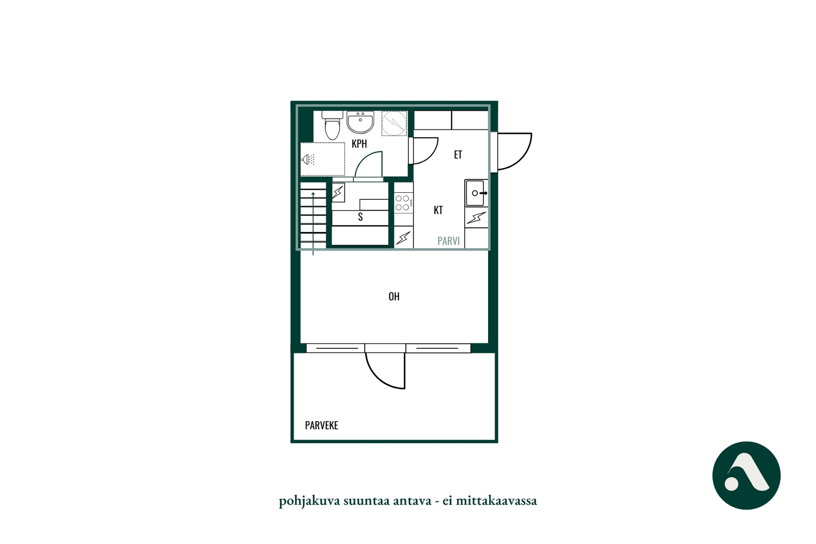 Huoneiston kokoonpano 1h, kk, kph, s, parvi, parveke