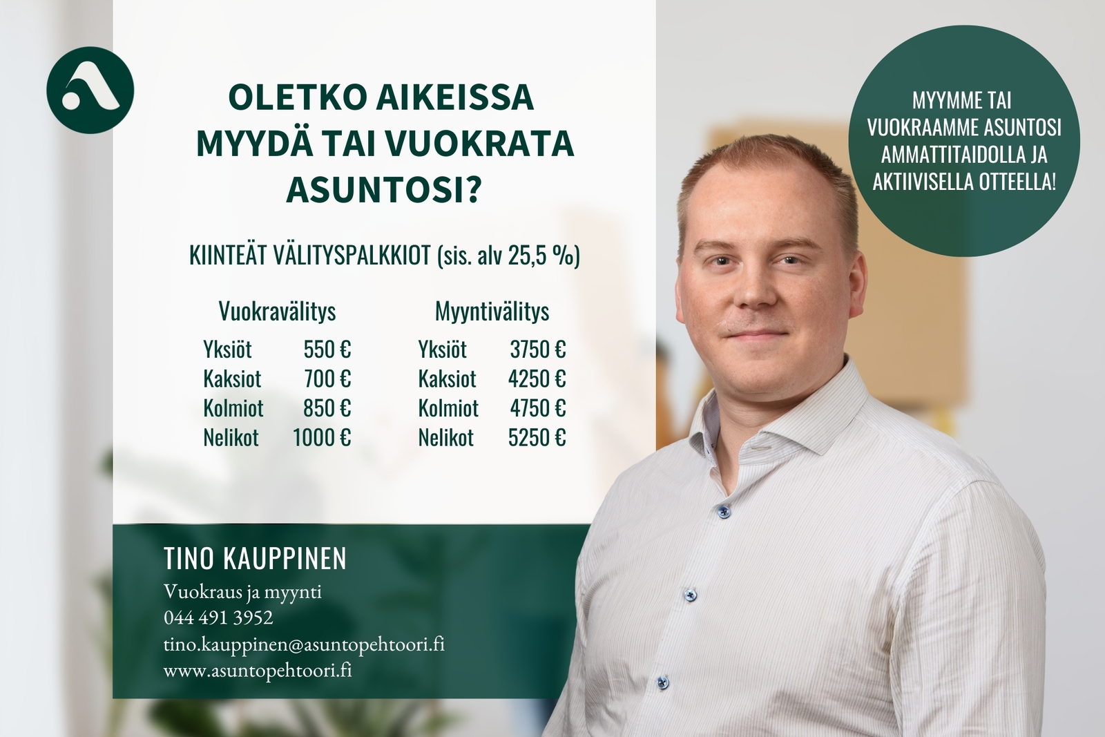 Täytä lomake ja välittäjä on sinuun yhteydessä mahdollisimman pian näytön sopimiseksi.