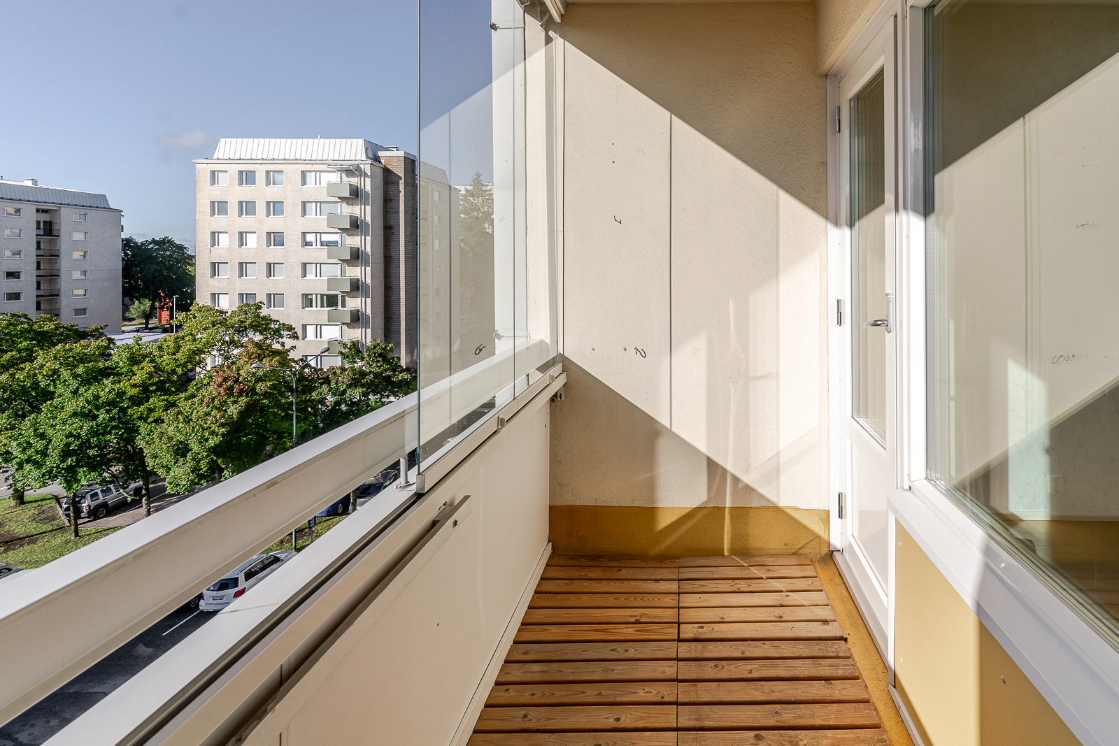 Tämän valoisan kulmahuoneiston toimiva pohjaratkaisu ja tilavat huoneet tarjoavat monipuoliset mahdollisuudet kodin sisustamiseen. Lasitettu parveke toimii viihtyisänä lisähuoneena keväästä pitkälle syksyyn. Keittiössä on runsaasti säilytys- ja työskentelytilaa. Kylpyhuone on kompakti, mutta siellä on kuitenkin hyvin tilaa pesukoneelle. Asunto sijaitsee hissitalon neljännessä kerroksessa.