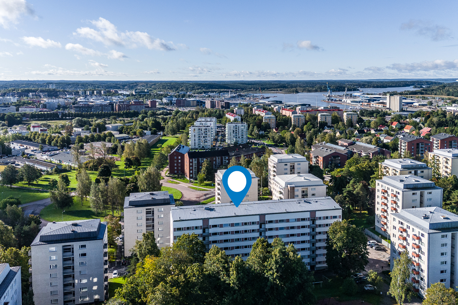 Talo sijaitsee vehreällä ja rauhallisella paikalla. Erinomaiset ulkoilu- ja harrastusmahdollisuudet löytyvätkin aivan vierestä. Myös palvelut ovat helposti saavutettavissa. Hyvät liikenneyhteydet takaavat sujuvan arjen – läheiseltä bussipysäkiltä on helppo kulkea niin keskustaan kuin vaikka telakallekin.