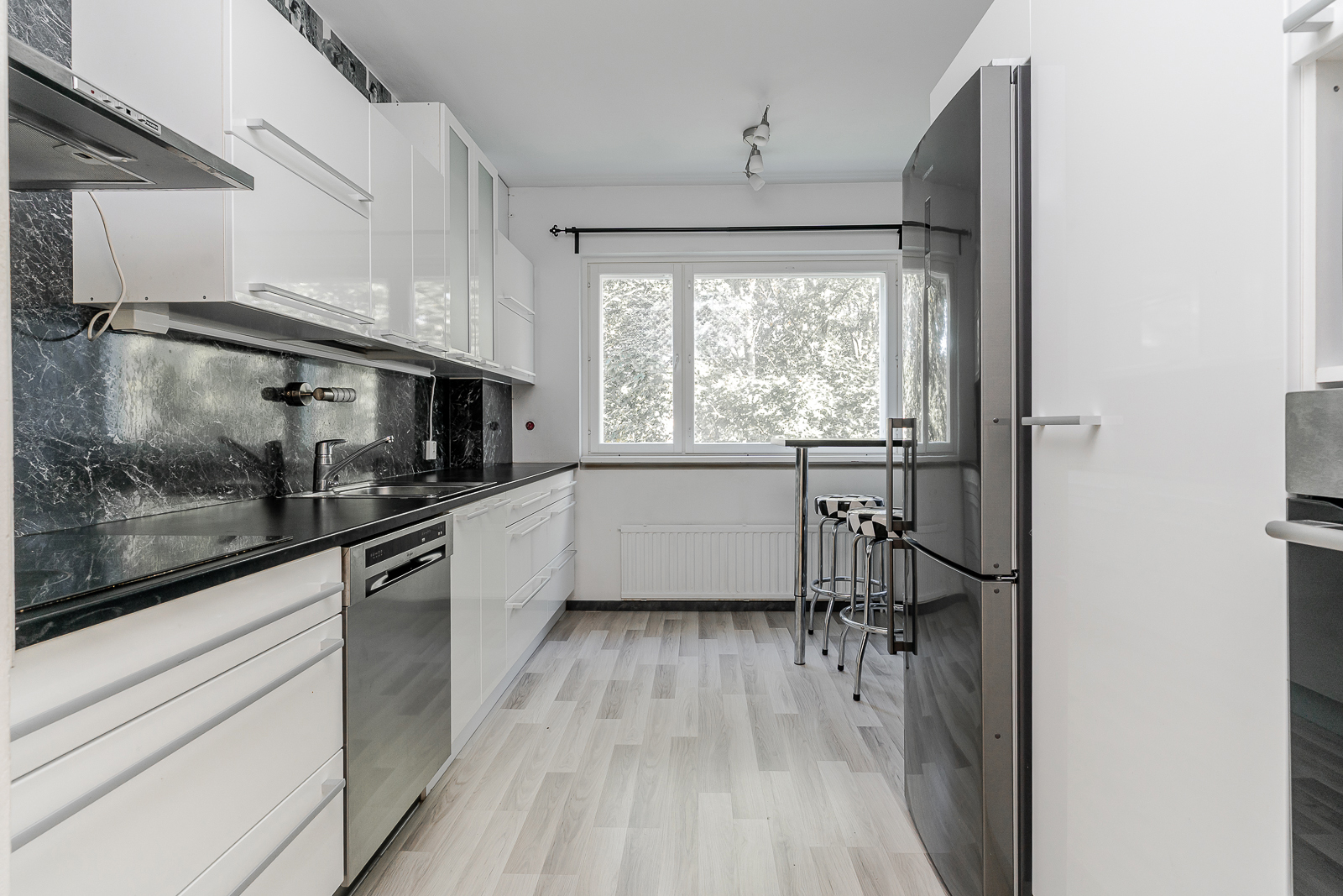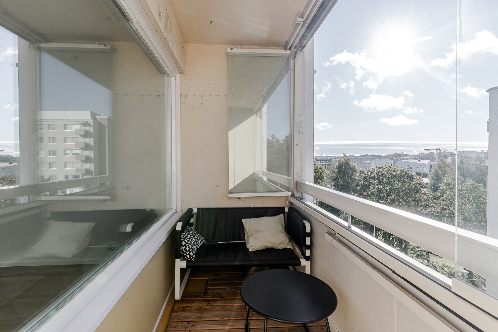 Tämän valoisan kulmahuoneiston toimiva pohjaratkaisu ja tilavat huoneet tarjoavat monipuoliset mahdollisuudet kodin sisustamiseen. Lasitettu parveke toimii viihtyisänä lisähuoneena keväästä pitkälle syksyyn. Keittiössä on runsaasti säilytys- ja työskentelytilaa. Kylpyhuone on kompakti, mutta siellä on kuitenkin hyvin tilaa pesukoneelle. Asunto sijaitsee hissitalon neljännessä kerroksessa. Kyseessä on kodikas perheasunto, joka ei vaadi suuria remontteja, vaan on heti muuttovalmis.