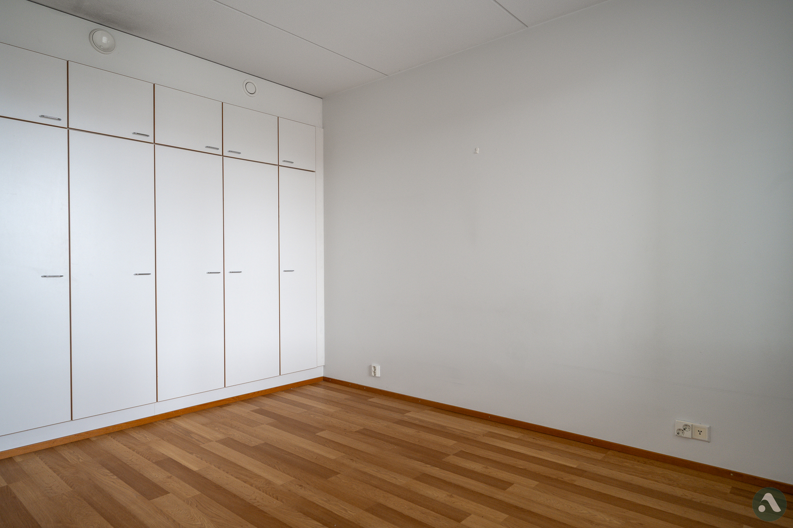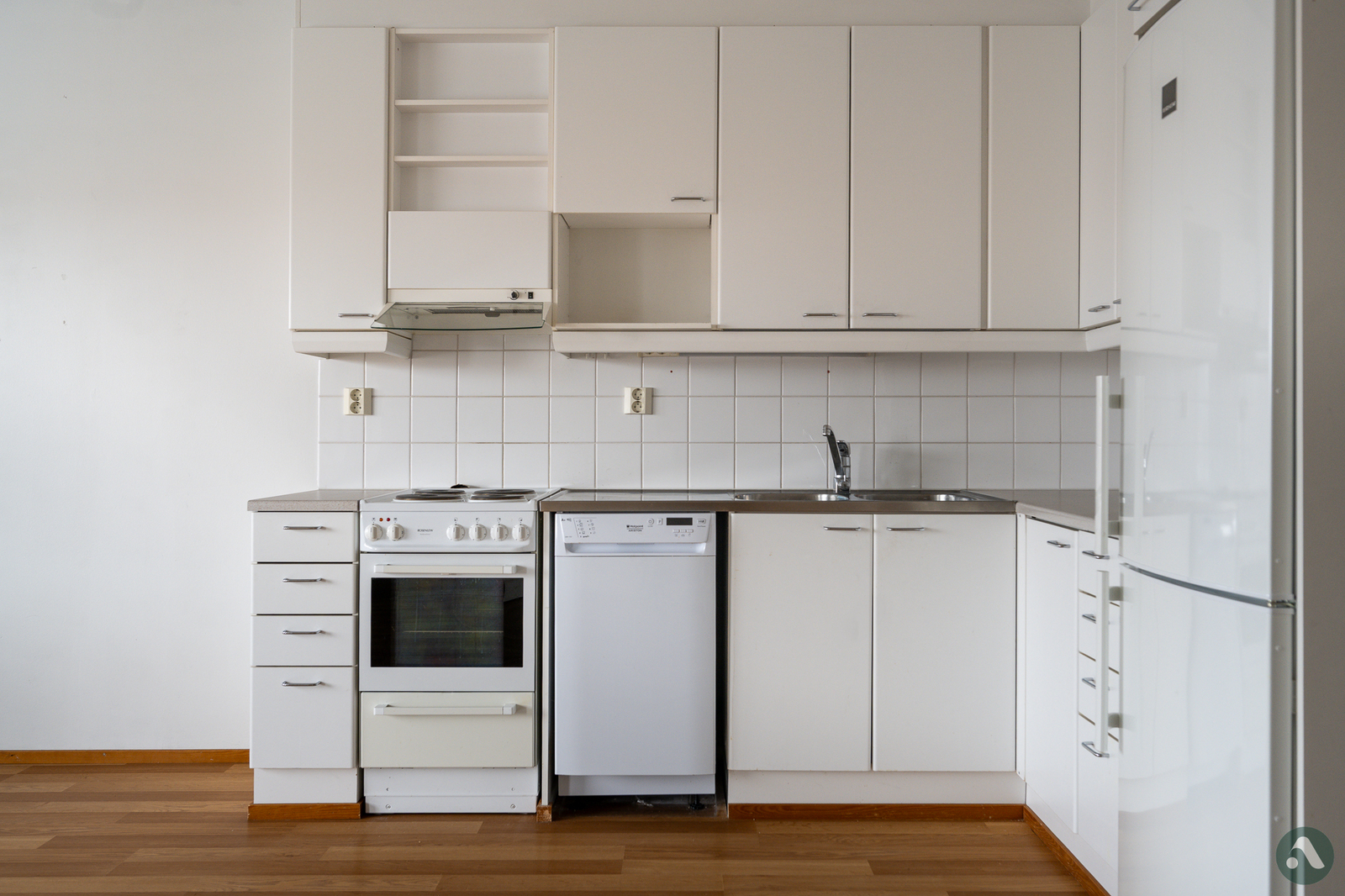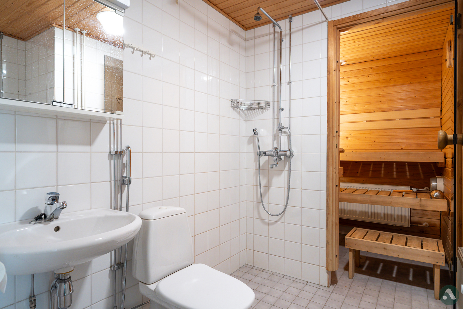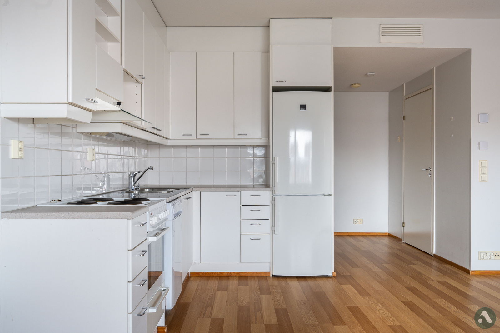 Asunnossa on selkeä ja tehokas pohjaratkaisu: olohuoneessa ja makuuhuoneessa on laminaattilattiat ja vaaleasävyiset, maalatut seinät, jotka tuovat tilaan avaruutta ja valoisuutta. Makuuhuoneessa on kaapistot valmiina, ja säilytystilaa löytyy riittävästi. Keittiö on kompakti, mutta tarjoaa hyvin tilaa arjen kokkailuun. Laatoitettu kylpyhuone on siisti ja käytännöllinen, ja oma, paneloitu sauna kruunaa asumismukavuuden.