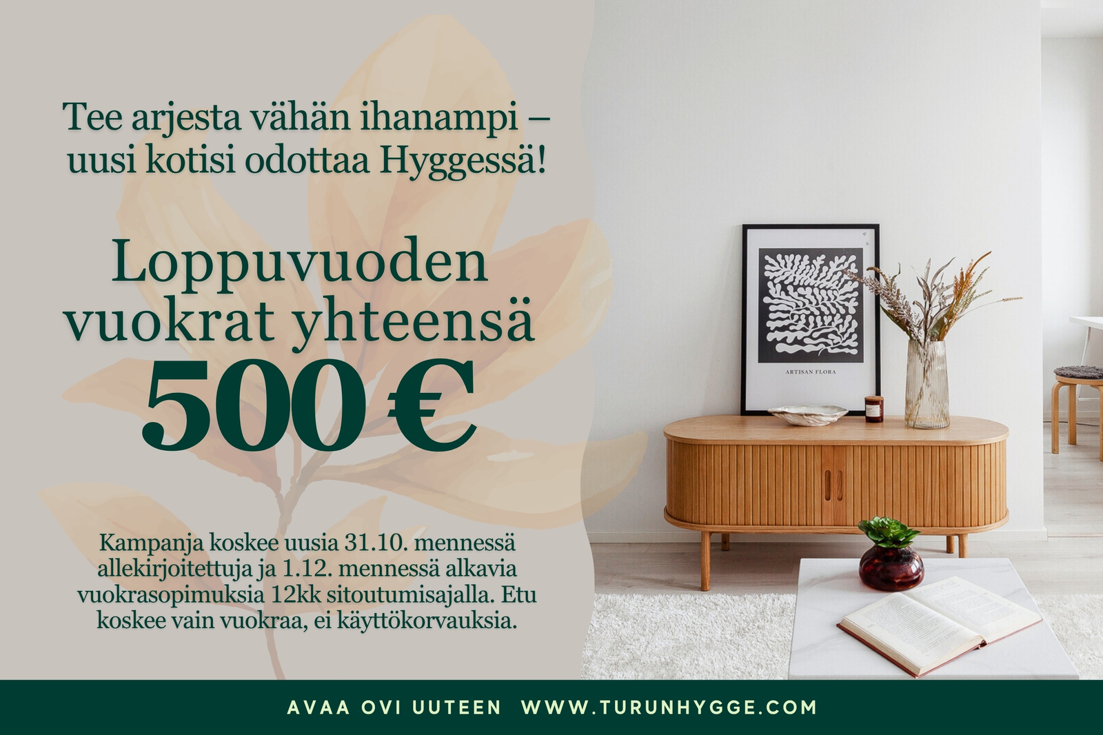 Kampanjaetu: Loppuvuoden vuokrat yhteensä 500 €.