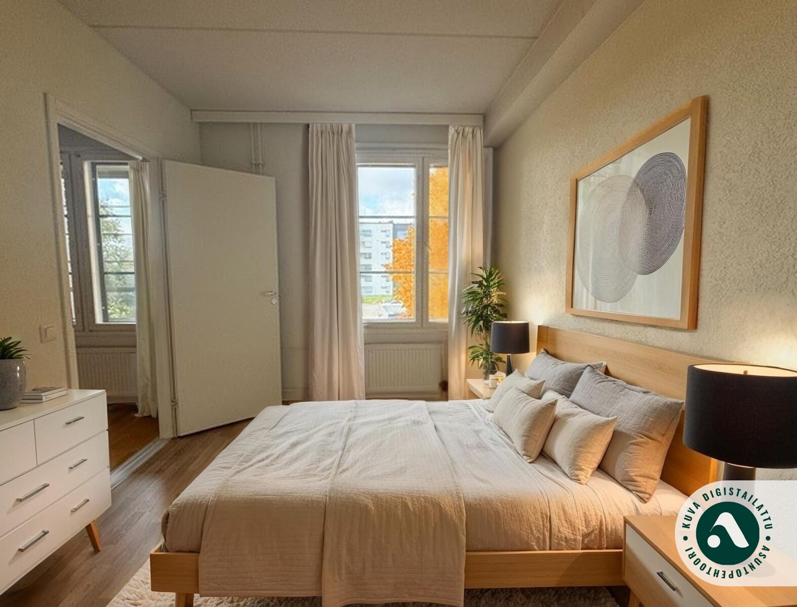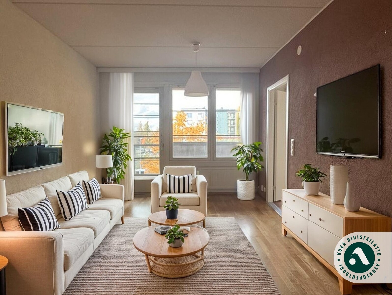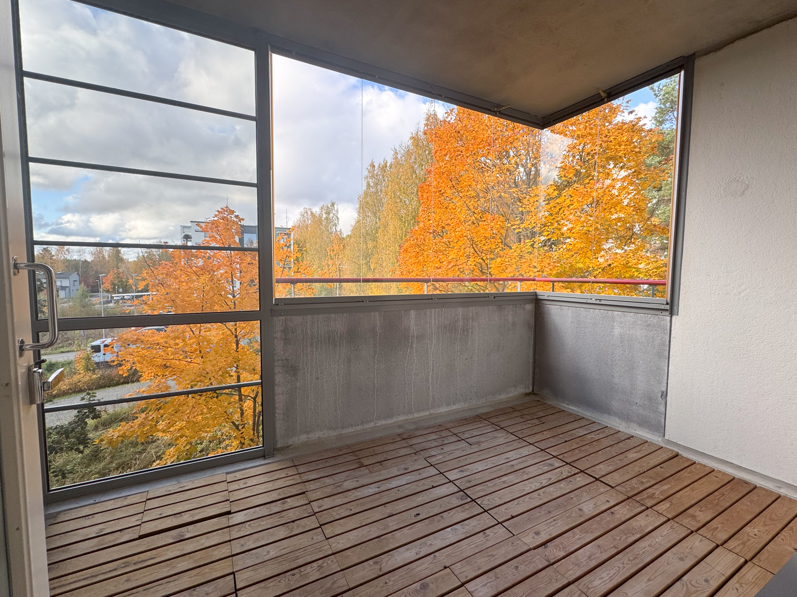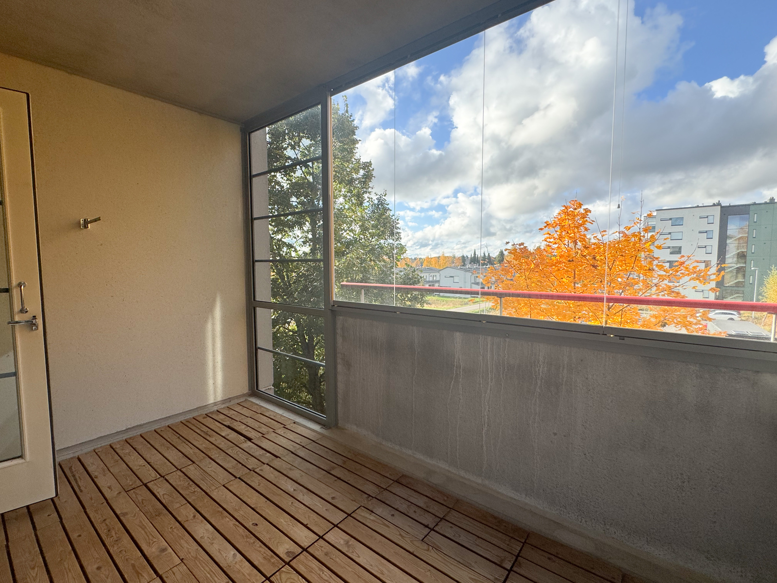 Asunto sijaitsee 3. kerroksessa ja tarjoaa toimivan pohjaratkaisun. Avara ja valoisa olohuone yhdistyy saumattomasti keittotilaan muodostaen yhtenäisen oleskelualueen. Olohuoneesta on käynti tilavalle lasitetulle parvekkeelle jossa on mukava viettää aikaa aikaisestä keväästä pitkälle syksyyn. Keittiössä on kaikki tarpeellinen sujuvaan arkeen kuten jääkaappi/pakastin, keraaminen liesitaso ja astianpesukone. Tilavassa kylpyhuoneessa on tilavaraus pyykinpesukoneelle ja oman saunan löylyistä voi nauttia koska tahansa. Säilytystilaa luo erillinen vaatehuone.