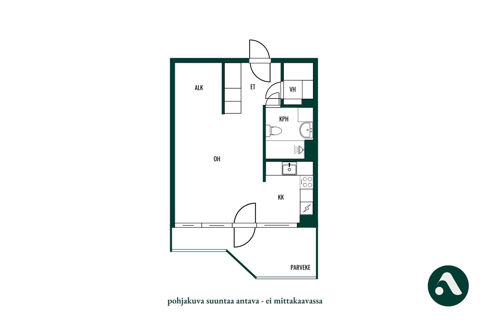 Huoneiston kokoonpano 1h+k+kph/wc+las.parv.