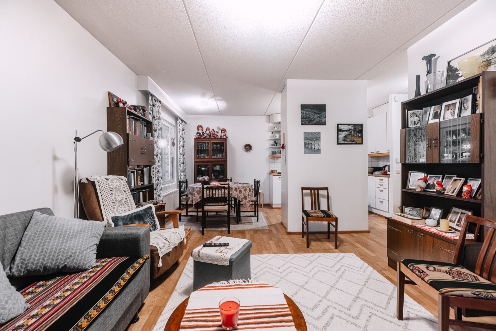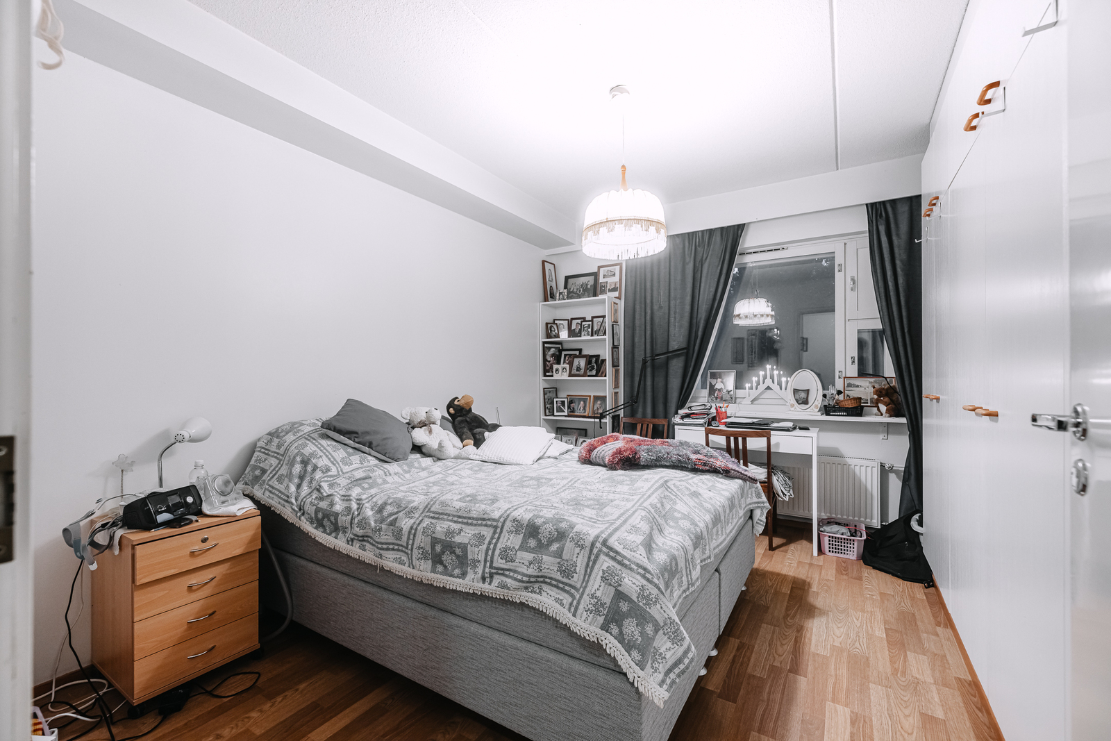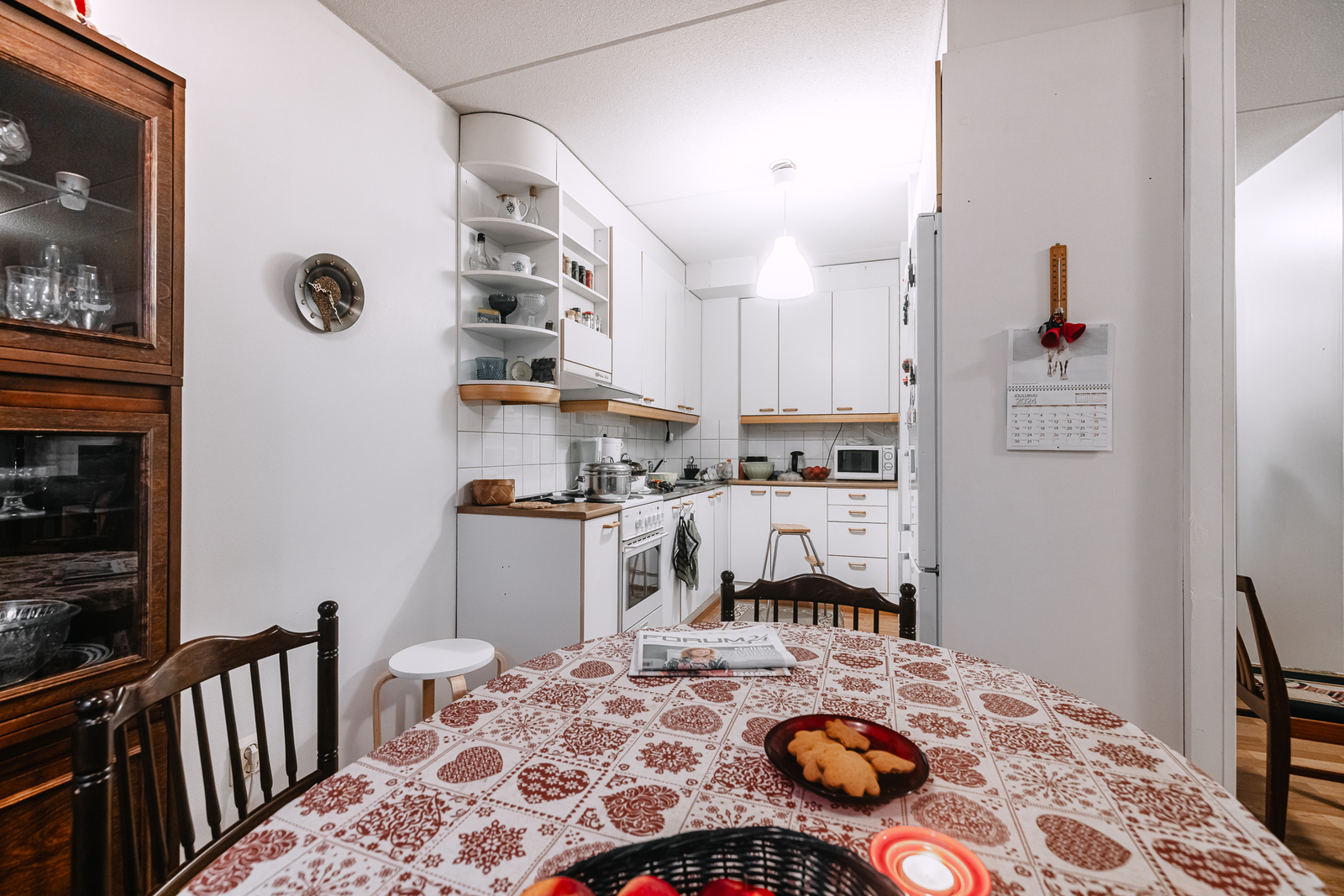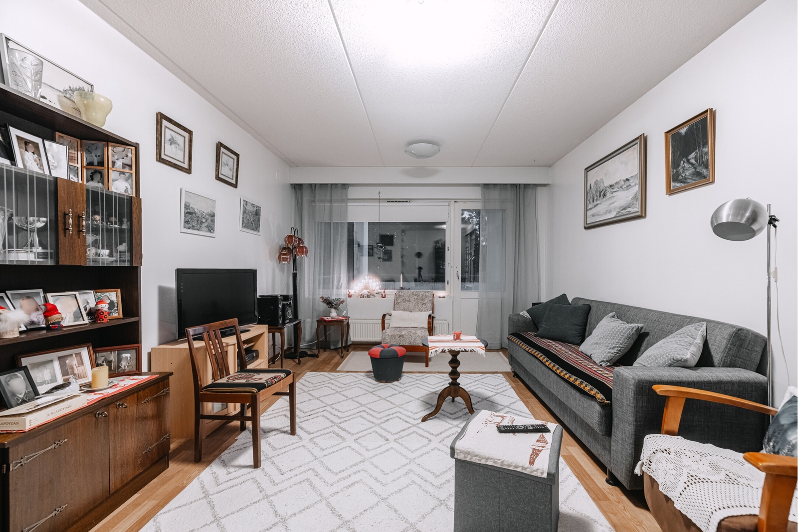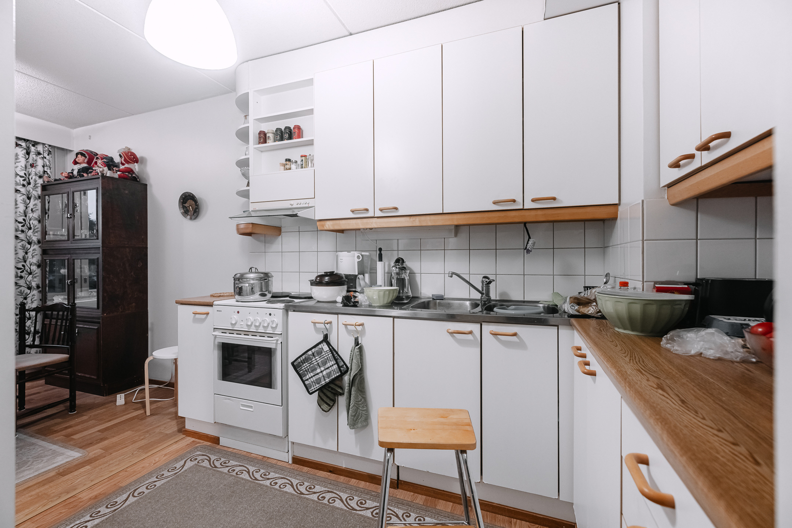 Tässä valoisassa asunnossa on toimiva pohjaratkaisu ja runsaasti säilytystilaa. Keittiössä on reilusti kaappitilaa, jääkaappi-pakastin ja keraaminen liesi. Avara olohuone tarjoaa hyvin tilaa sisustukselle, ja asunnon parveke avautuu rauhalliselle sisäpihalle. Makuuhuoneessa on hyvin kaappitilaa, ja kaakeloidussa kylpyhuoneessa on pesukoneliitäntä sekä oma sauna.