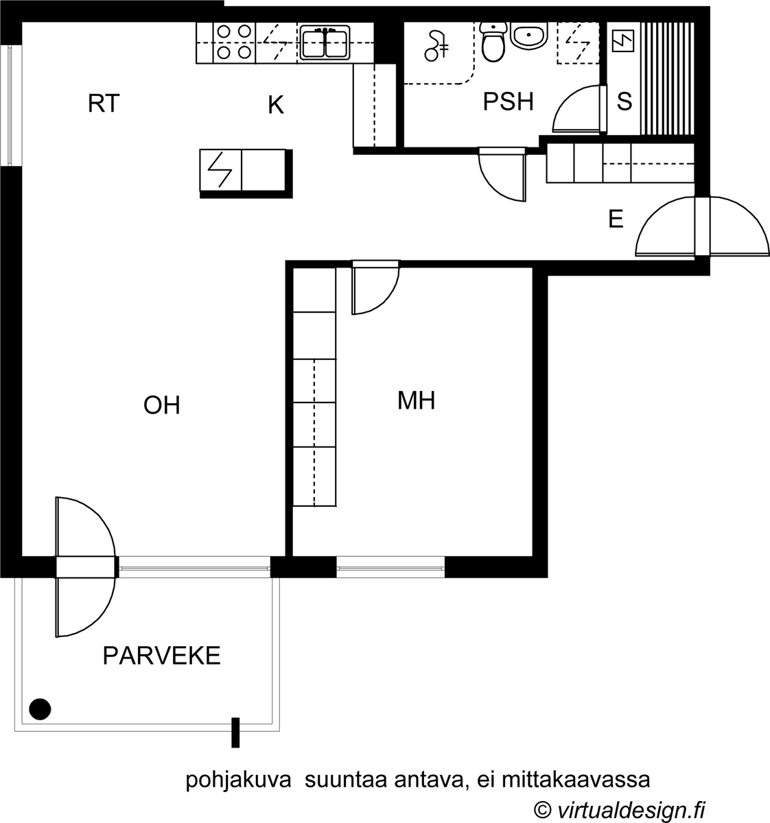 Huoneiston kokoonpano 2h+k+vh+s+parv.
