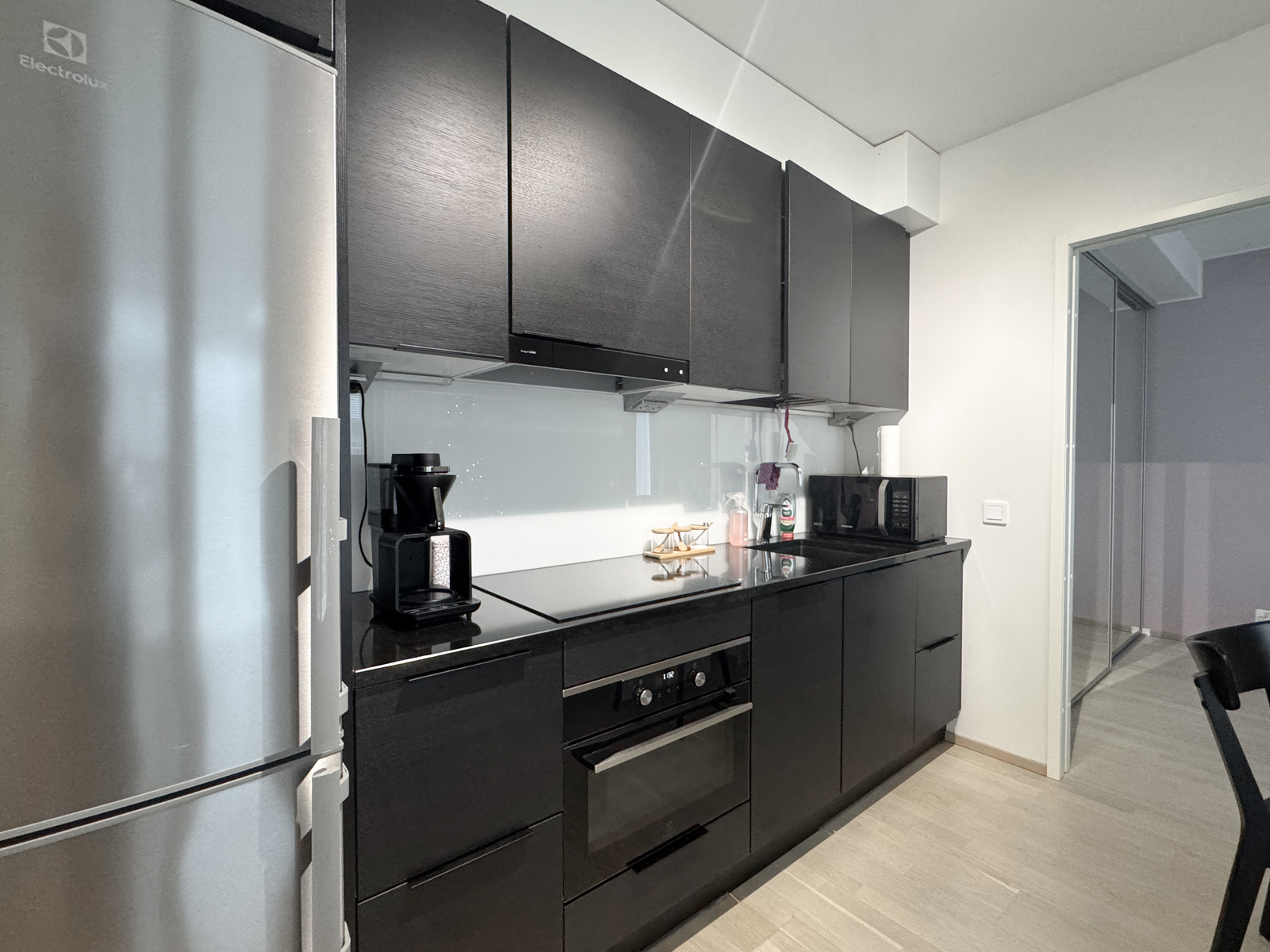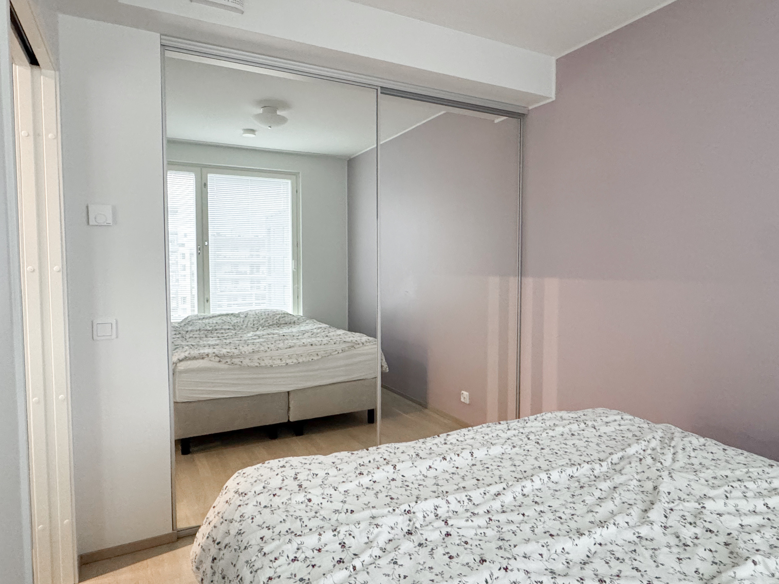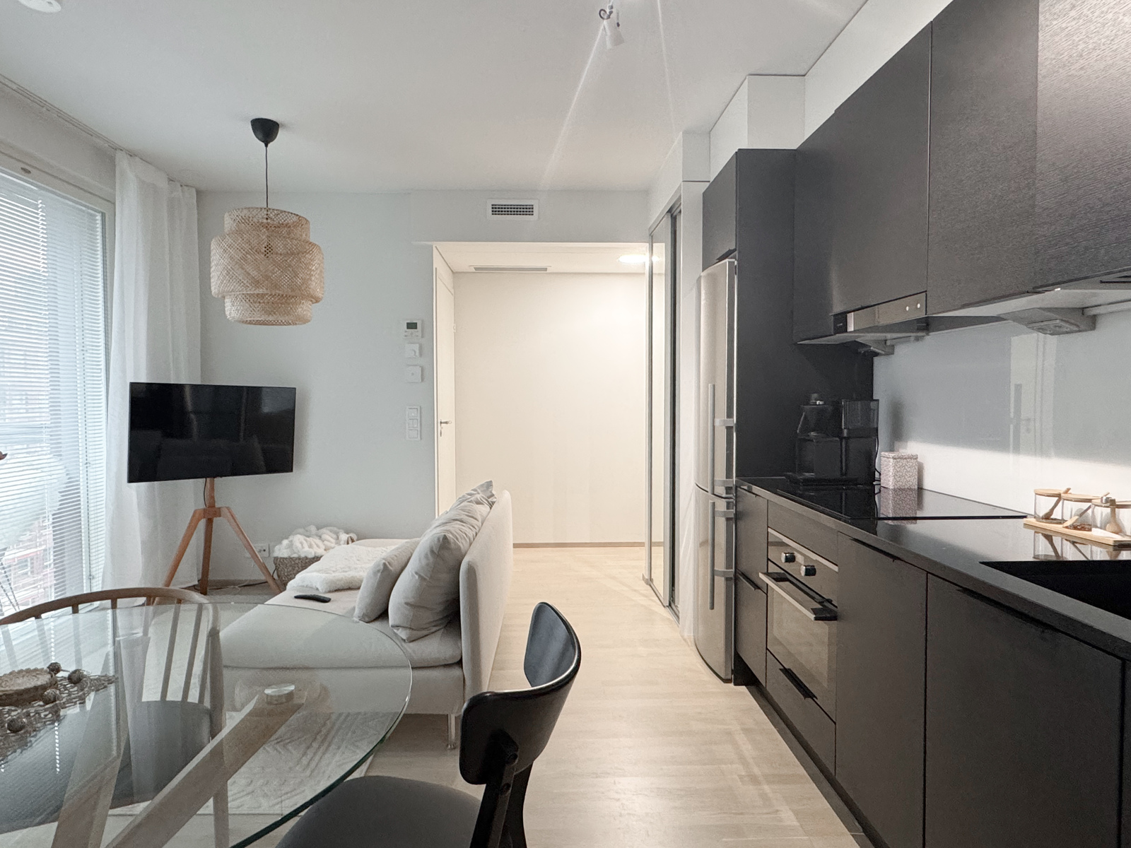 Tässä asunnossa on suuret ikkunat, jotka tuovat kauniisti luonnonvaloa ja avaruutta tilaan. Modernista tummasta keittiöstä löytyy kaikki tarpeellinen sujuvaan arkeen, kuten mikro/uuni-yhdistelmä, astianpesukone ja jääkaappi/pakastin. Tyylikkäästi laatoitetussa kylpyhuoneessa on pyykinpesukoneelle liitäntä ja asunnon parvekkeelta on vähän maisemaa Näsijärven suuntaan. Säilytystilaa on makuuhuoneen kaapistoissa sekä huoneistokohtaisessa irtaimistovarastossa.