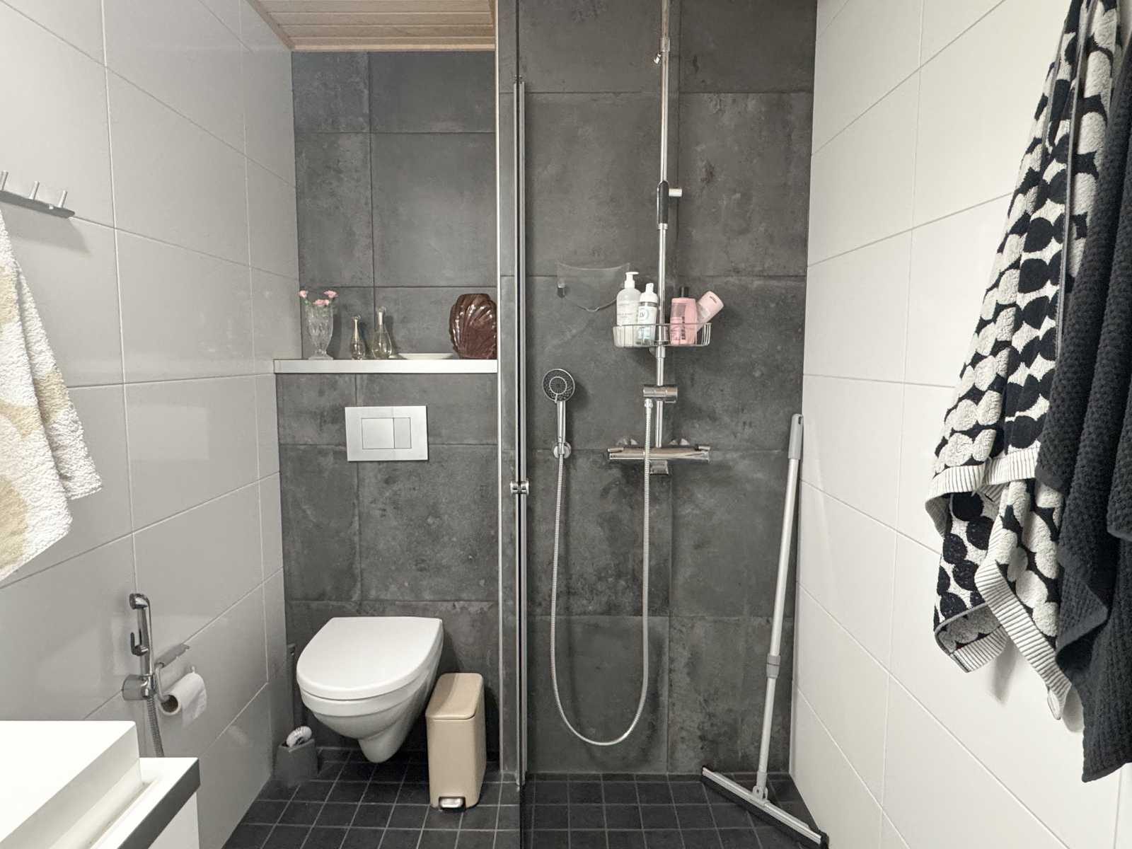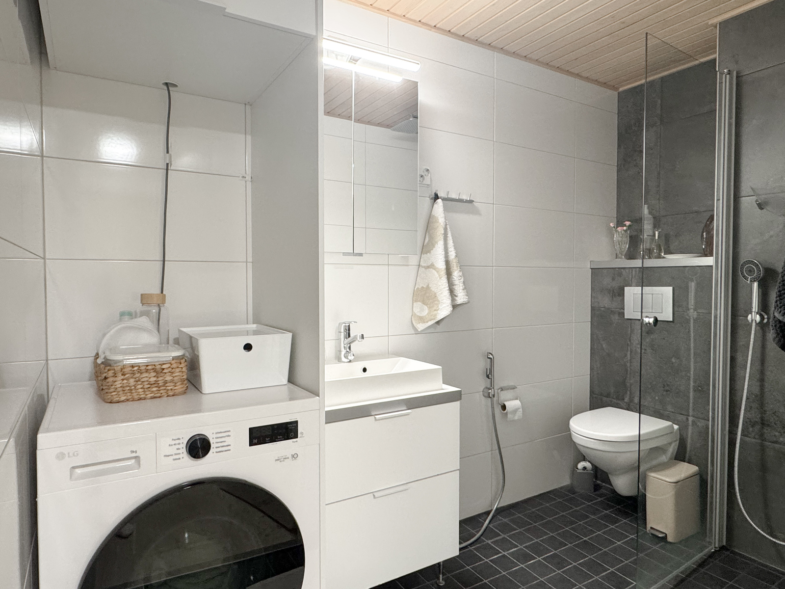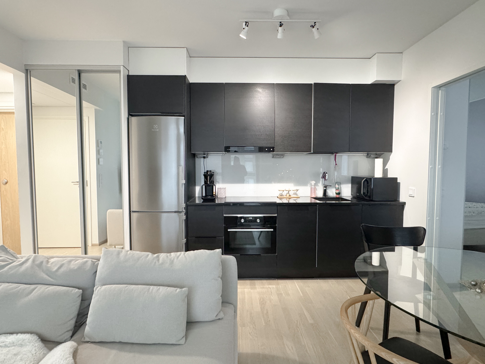Tässä asunnossa on suuret ikkunat, jotka tuovat kauniisti luonnonvaloa ja avaruutta tilaan. Modernista tummasta keittiöstä löytyy kaikki tarpeellinen sujuvaan arkeen, kuten mikro/uuni-yhdistelmä, astianpesukone ja jääkaappi/pakastin. Tyylikkäästi laatoitetussa kylpyhuoneessa on pyykinpesukoneelle liitäntä ja asunnon parvekkeelta on vähän maisemaa Näsijärven suuntaan. Säilytystilaa on makuuhuoneen kaapistoissa sekä huoneistokohtaisessa irtaimistovarastossa.