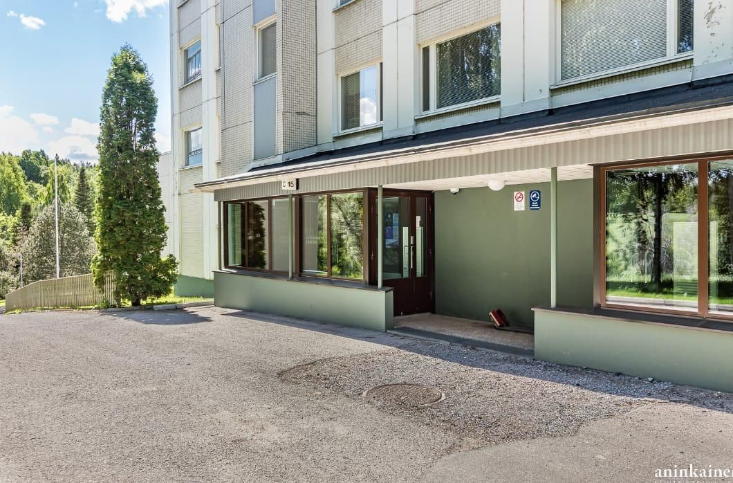 Asunto sijaitsee hissilisen talon 2. kerroksessa ja näkymä ikkunoista on vehreä.