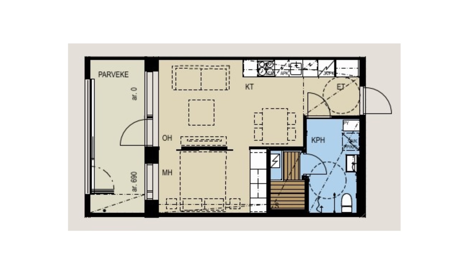Asunnon tunnelma on raikas ja valoisa: suuret lasipinnat tuovat tilaan runsaasti luonnonvaloa ja tekevät kokonaisuudesta avaran. Oleskelutilasta on luonteva kulku isolle lasitetulle parvekkeelle, joka toimii käytännössä lisähuoneena aikaisesta keväästä pitkälle syksyyn – täydellinen paikka aamukahville, etätöihin tai iltahetkiin kaupungin valojen syttyessä. Selkeä pohjaratkaisu tekee arjesta sujuvaa: olohuone ja keittiö muodostavat toimivan kokonaisuuden, ja erillinen makuuhuone tuo rauhaa sekä asumiseen että majoituskäyttöön. Keittiö on linjakas ja viimeistelty: modernit kaapistot, kivimäinen välitila sekä integroidut kodinkoneet luovat laadukkaan kokonaisuuden, jossa arki toimii ja näyttää hyvältä. Oman saunan ansiosta tämä koti tarjoaa juuri sen viimeisen “wow-tekijän”, joka nostaa asumismukavuutta joka päivä.