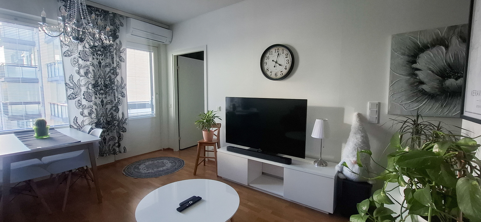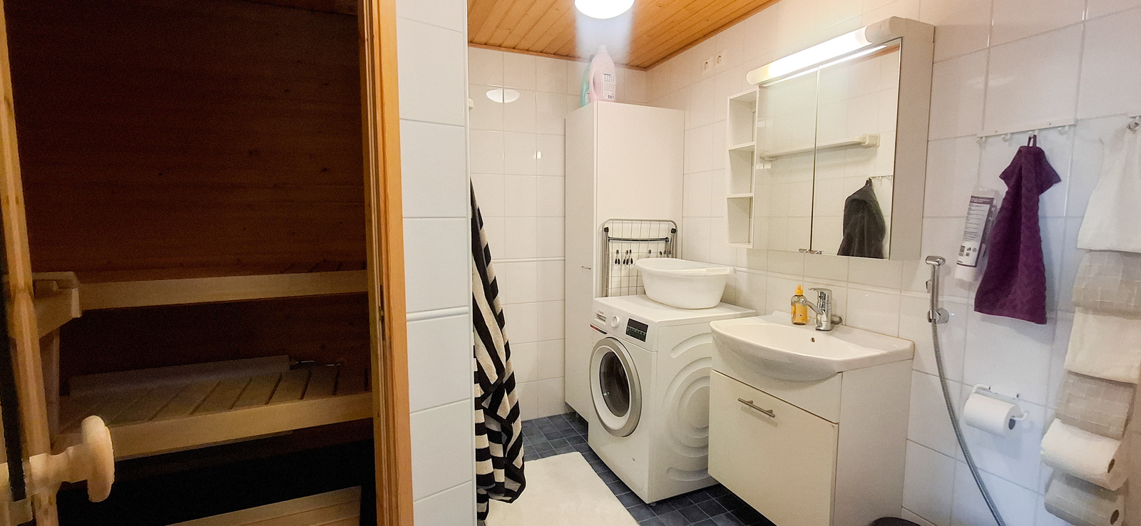 Tämä uudenveroinen, tilava saunallinen kaksio tarjoaa loistavat puitteet viihtyisään asumiseen! Seinät ovat raikkaan valkoiset ja lattiat ylellistä parkettia. Asunnossa ilmalämpöpumppu helpottamassa arkea. Modernista keittiöstä löytyy kaikki tarpeellinen kotikokin tarpeisiin astianpesukoneineen. Tyylikkäästi laatoitetussa kylpyhuoneessa voit nauttia löylyistä. Kylpyhuoneesta löytyy pesukoneliitäntä ja hyvä tila vaikka pesutornille. Kokonaisuuden kruunaa suuri, lasitettu parveke, joka toimii lisähuoneena lähes ympäri vuoden.