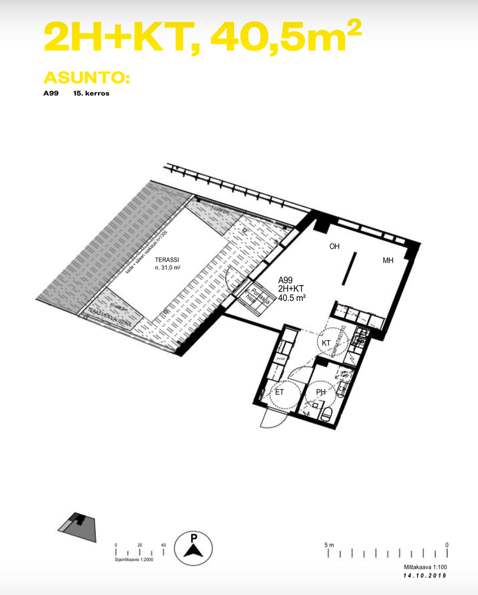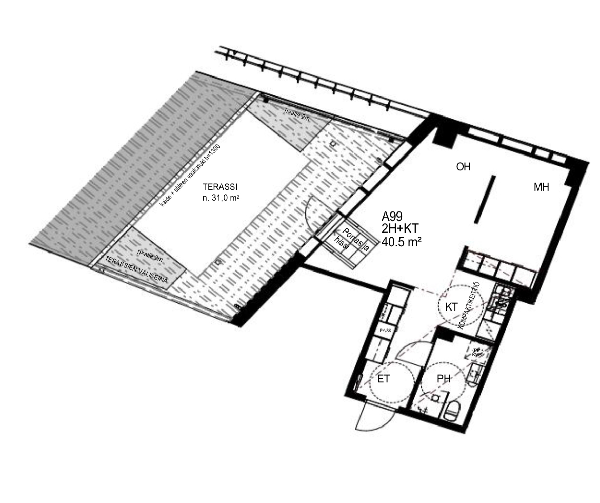 Huoneiston kokoonpano 2h+kt+kph+terassi 15.krs
