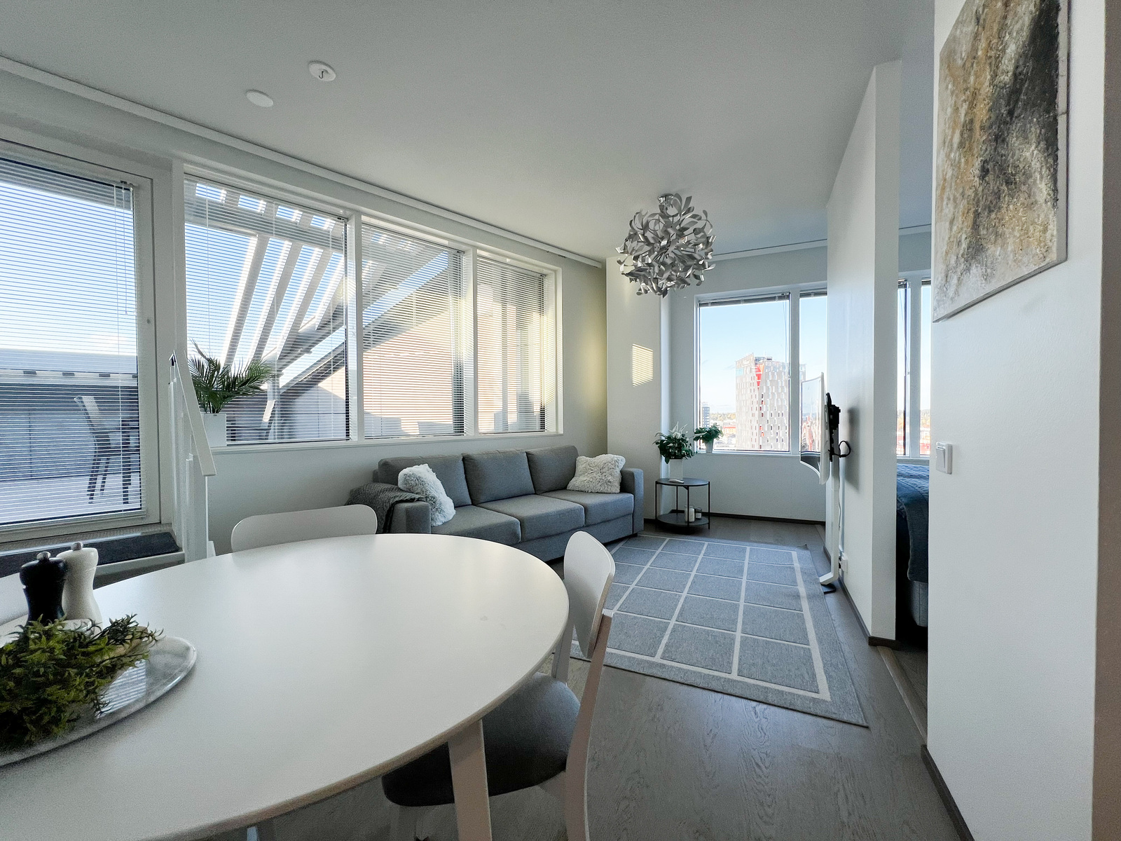 Nokia Areenan vierestä 15.krs heti vapaa poikkeuksellisen laadukas ja upea keskustakoti huikeilla näkymillä ja yli 30 m2 näköalaterassilla!