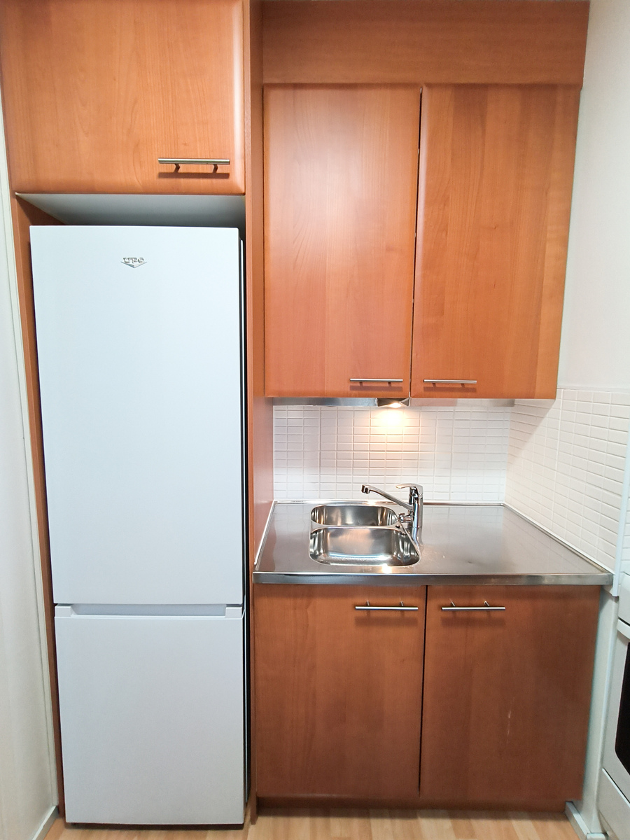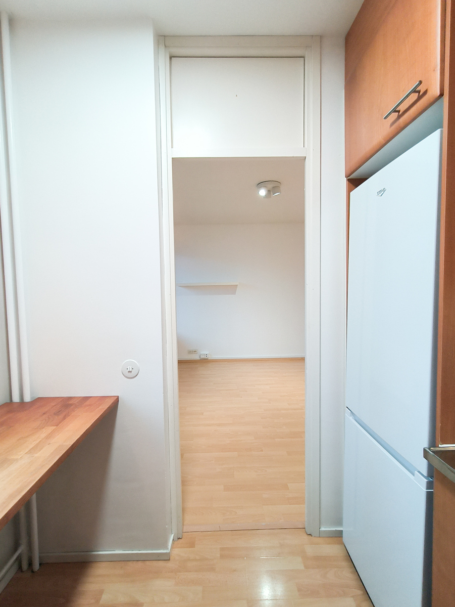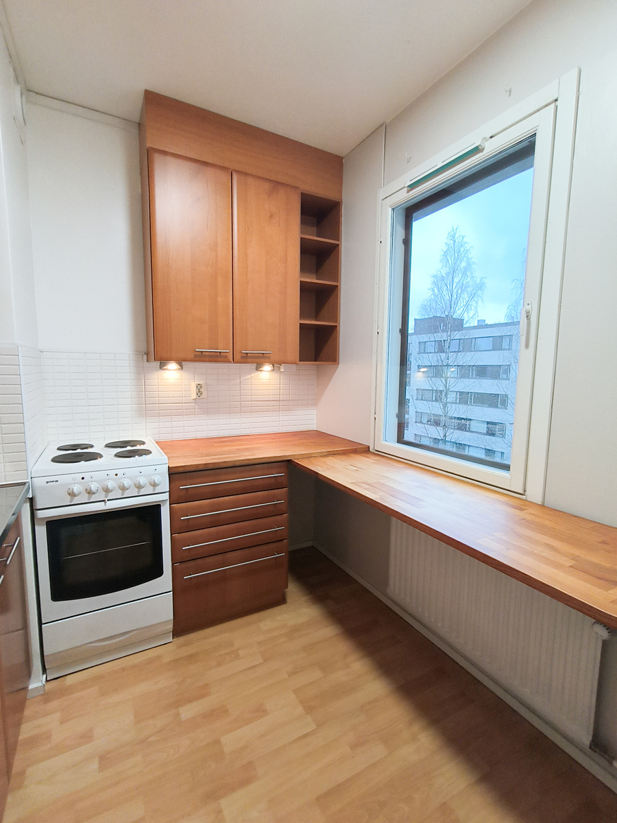 Tämän hyväpohjaisen kodin pohjaratkaisu on toimiva ja helposti kalustettavissa. Sängylle on oma paikka alkovissa ja huonetilaan mahtuu hyvin sohva ja vaikka etätyöpiste. Pinnat on juuri maalattu ja keittiöön on hankittu uusi jääkaappipakastin. Keittiössä on mukavasti kaappitilaa ja massiivityötason ansiosta työskentelytilaa on runsaasti. Asunnon lattiat ovat vaaleaa laminaattia ja seinät raikkaan valkoiset. Moderni kylpyhuone on uusittu yhtiön putkiremontin yhteydessä vuonna 2021 ja siellä on vuokralaisen käyttöön tilaan sopiva pyykinpesukone. Asunnon suurista ikkunoista avautuvat näkymät sisäpihalle ja lasitettu parveke tarjoaa viihtyisän paikan rentoutua.