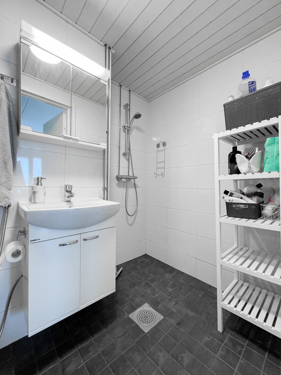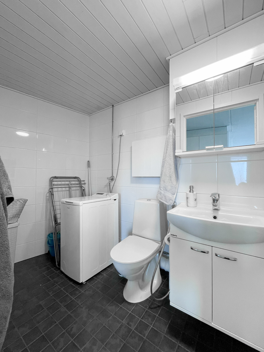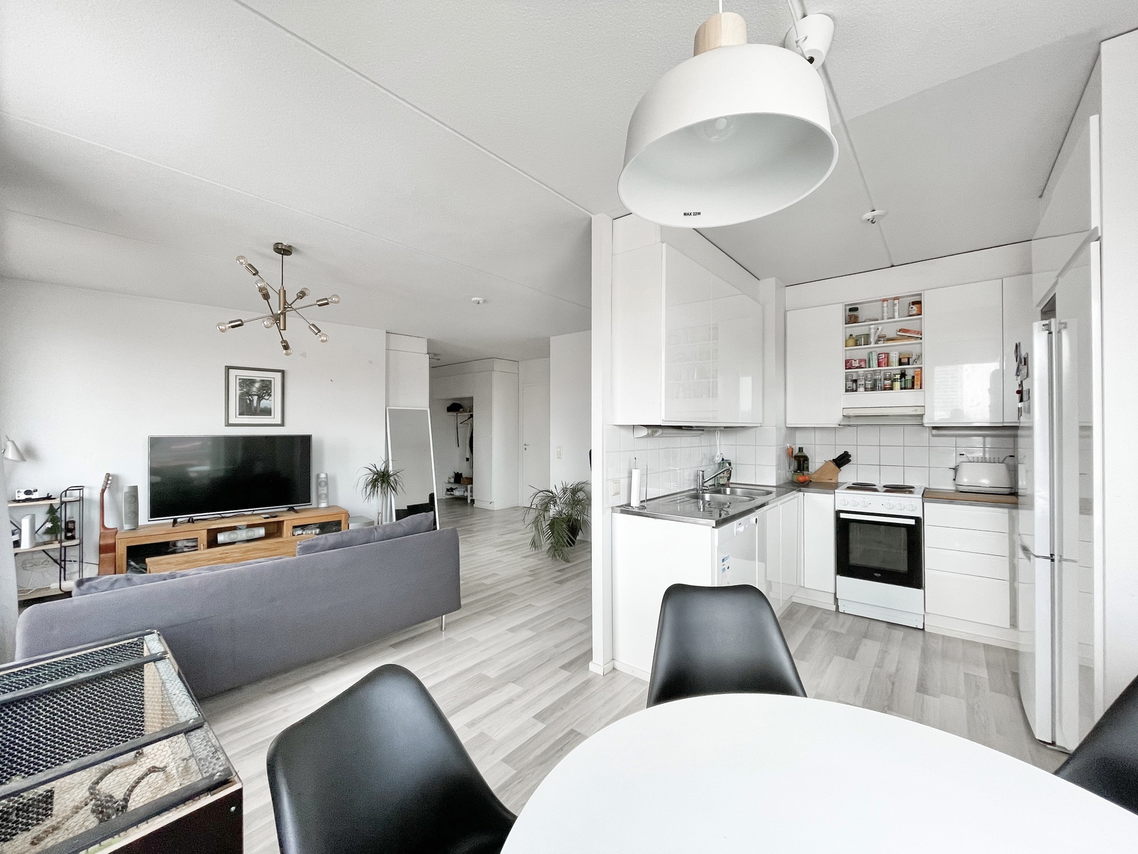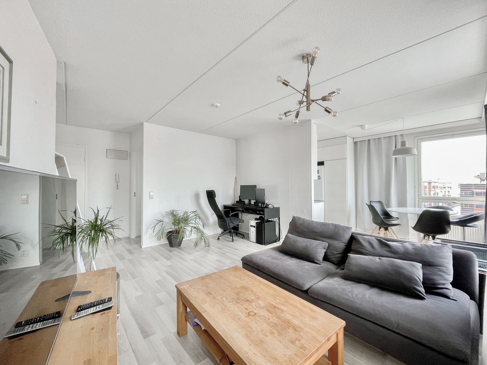 Hyvän pohjaratkaisun ja lukuisien ikkunoiden ansiosta koti on avara ja valoisa. Avaran olohuoneen yhteydessä on hyvänkokoinen keittiö ja ruokailutila. Keittiössä on hyvin kaappi- ja laskutilaa ja kaikki tarvittavat kodinkoneet sujuvaan arkeen. Olohuoneen nurkkaan sopii täydellisesti esimerkiksi etätyöpiste. Tilava ja moderni kylpyhuone on remontoitu vuonna 2020 ja sieltä löytyy pyykinpesukoneliitäntä. Säilytystilaa on mukavasti eteisen ja makuuhuoneen kaapistoissa. Parvekkeelta ja ikkunoista upeat ylimmän kerroksen näkymät Kalasatamaan asti!