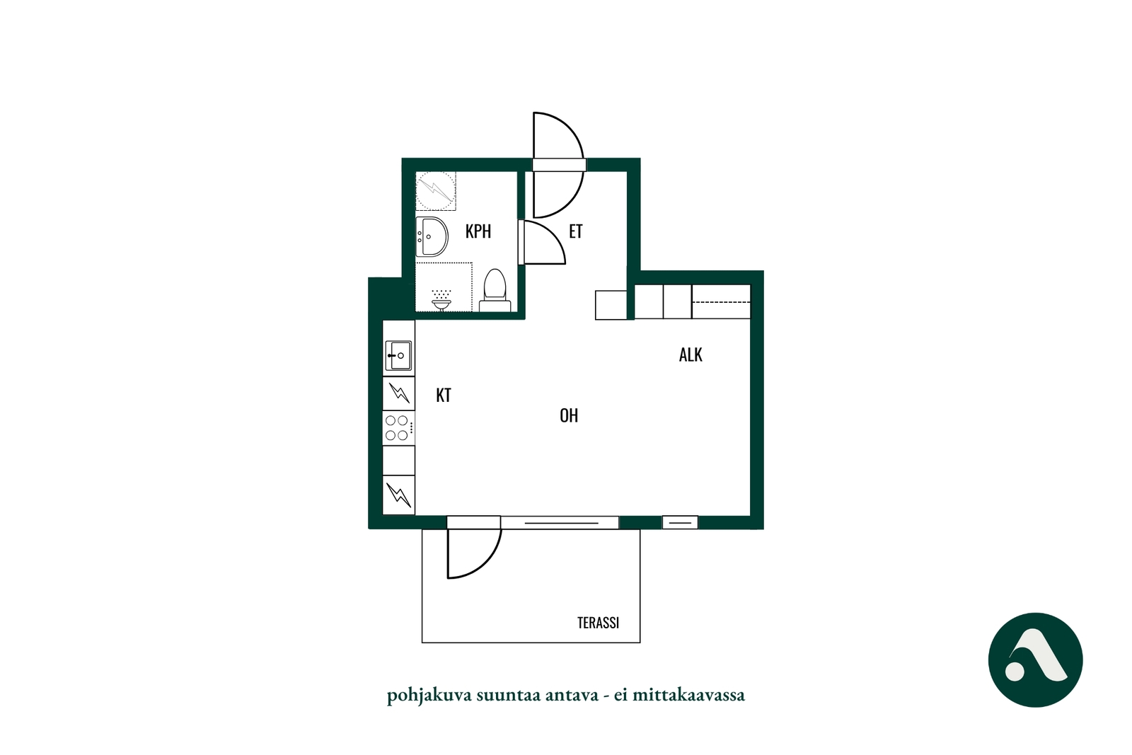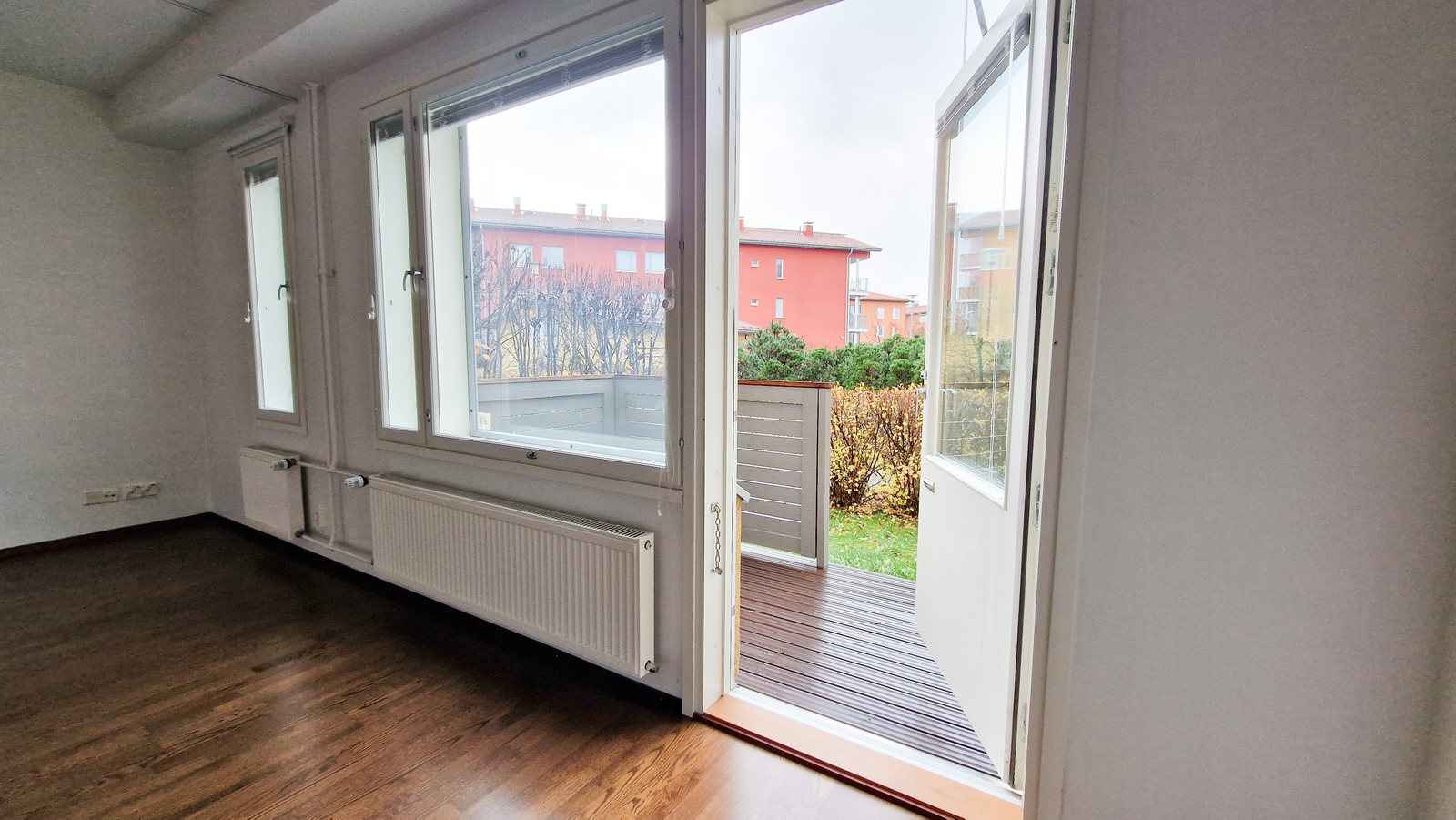Hyvällä pohjaratkaisulla varustettu yksiö omalla pienellä pihalla ja terassilla!