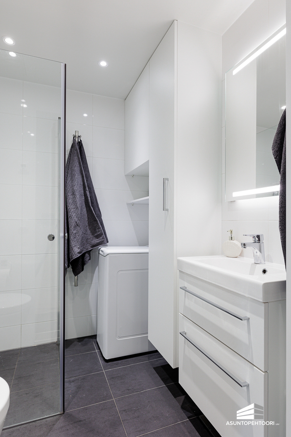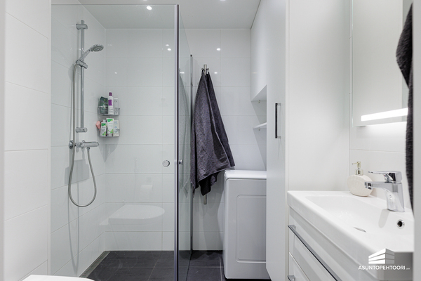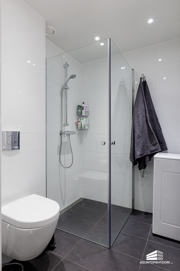 Asunnossa on panostettu laatuun ja kaikissa on mm. AEG:n kodinkoneet, lattialämmitys sekä tilava lasitettu parveke. Kylpyhuoneeseen mahtuu pesukone ja kuivausrumpu. Valoisuutta tuo lattiaan asti ulottuvat ikkunat ja lattialämmityksen ansiosta pattereita ei ole lainkaan.