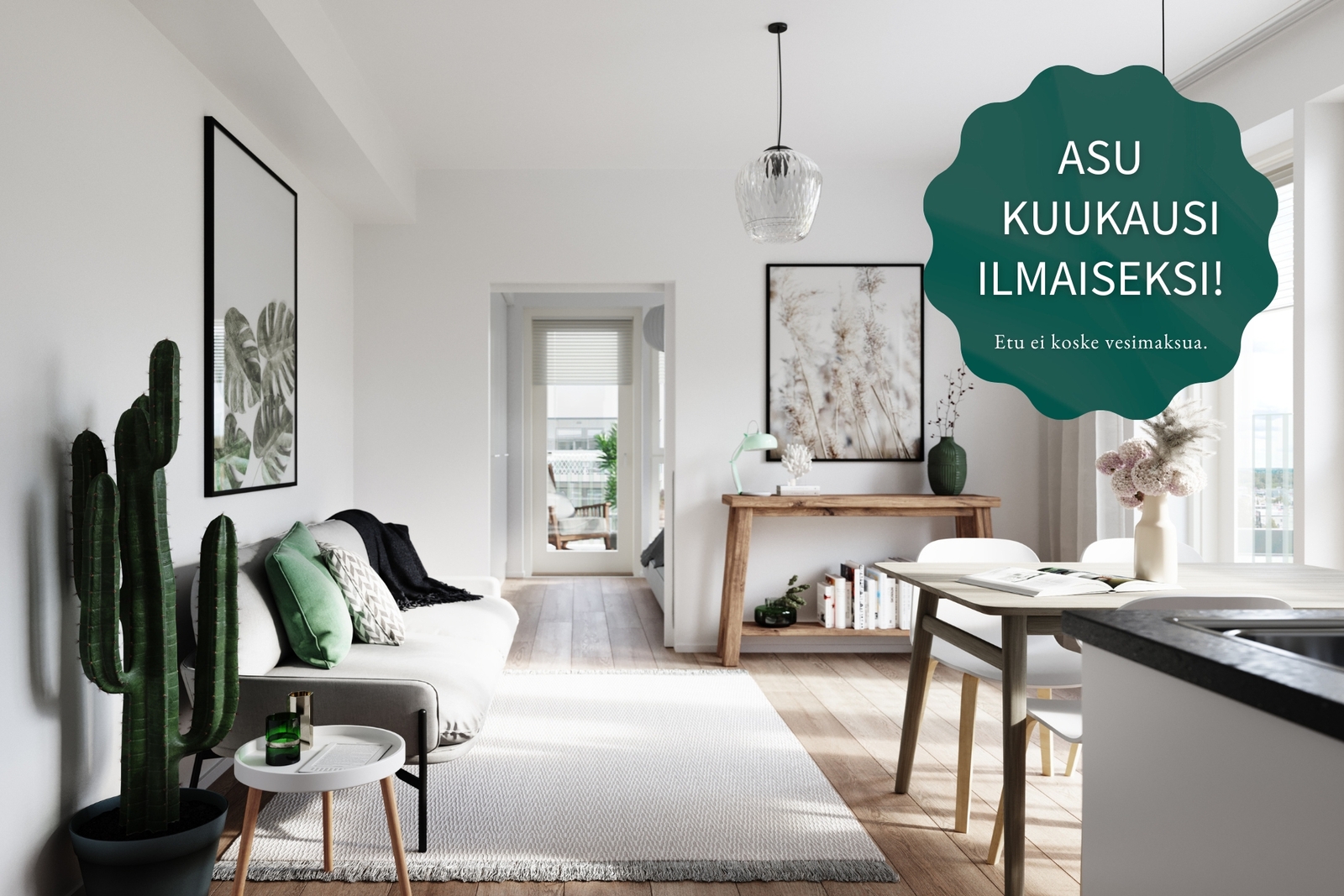 Kampanjaehdot: Kampanja voimassa Juli Lielahden Tuuli asuntoihin, joihin solmitaan toistaiseksi voimassa oleva vuokrasopimus 12 kuukauden minimiasumisajalla. Jotta voit hyödyntää kampanjamme, asunnon vuokraus on tehtävä verkkosivuillamme 1.12.-31.12.2025 välisenä aikana. Vuokrauksen yhteydessä maksettu ennakkovuokra vähennetään kolmannelta täyden kuun vuokralaskulta ja kampanjaetu vähennetään neljänneltä täyden kuun vuokralaskulta. Mikäli sopimus on kestänyt alle 4 kuukautta, kampanjaetua ei hyödynnetä eikä sitä hyvitetä vuokralaskulta. Mikäli sopimus irtisanotaan ennen minimiasumisajan päättymistä, aiemmin hyvitetty kampanjaetu laskutetaan viimeisessä vuokralaskussa. Kampanjaetua ei voi hyödyntää aiemmin tehtyihin vuokrasopimuksiin eikä etua voi yhdistää muihin kampanjoihin. Kampanjaetua ei voi hyödyntää sopimusmuutoksissa, asunnonvaihdoissa Juli-kodista toiseen minimiasumisaikana tai jos vuokranmaksu ei ole ajan tasalla. Kampanjaetu ei koske vesimaksua.