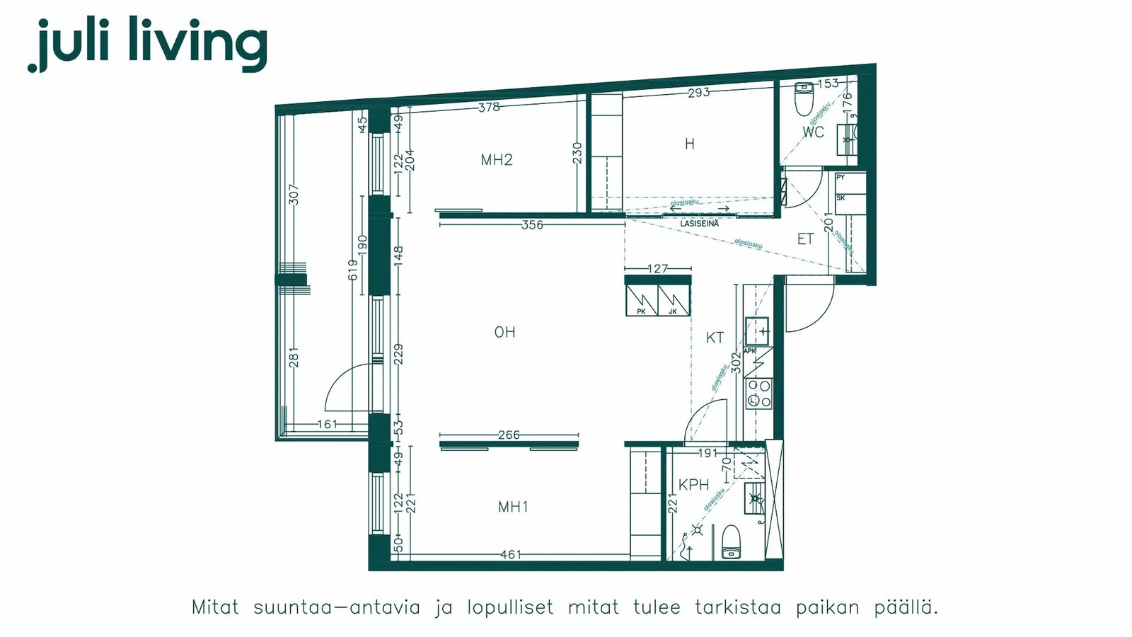 Kuvat ovat suuntaa-antavia havainnekuvia ja valokuvat voivat olla vastaavasta asunnosta toisessa rapussa, kerroksessa tai pohjan peilikuvasta – tutustuthan pohjaratkaisuun ja markkinointiesitteeseen huolellisesti. Pohjakuvien mitat ovat suuntaa-antavia ja lopulliset mitat tulee tarkastaa paikan päällä. Asunto vuokrataan kalustamattomana.