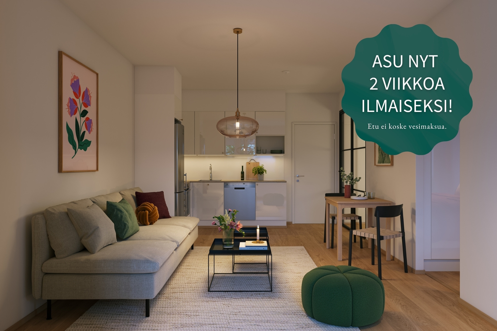 Kampanjaehdot: Kampanja voimassa Juli Tesoman Vuokko 3h-4h asuntoihin, joihin solmitaan toistaiseksi voimassa oleva vuokrasopimus 12 kuukauden minimiasumisajalla. Jotta voit hyödyntää kampanjamme, asunnon vuokraus on tehtävä verkkosivuillamme 6.10.-31.10.2025 välisenä aikana. Vuokrauksen yhteydessä maksettu ennakkovuokra vähennetään kolmannelta täyden kuun vuokralaskulta ja kampanjaetu vähennetään neljänneltä täyden kuun vuokralaskulta. Mikäli sopimus on kestänyt alle 4 kuukautta, kampanjaetua ei hyödynnetä eikä sitä hyvitetä vuokralaskulta. Mikäli sopimus irtisanotaan ennen minimiasumisajan päättymistä, aiemmin hyvitetty kampanjaetu laskutetaan viimeisessä vuokralaskussa. Kampanjaetua ei voi hyödyntää aiemmin tehtyihin vuokrasopimuksiin eikä etua voi yhdistää muihin kampanjoihin. Kampanjaetua ei voi hyödyntää sopimusmuutoksissa, asunnonvaihdoissa Juli-kodista toiseen minimiasumisaikana tai jos vuokranmaksu ei ole ajan tasalla. Kampanjaetu ei koske vesimaksua.