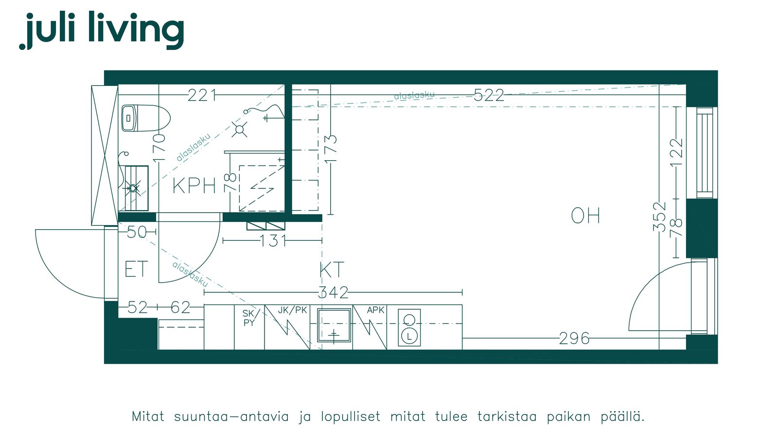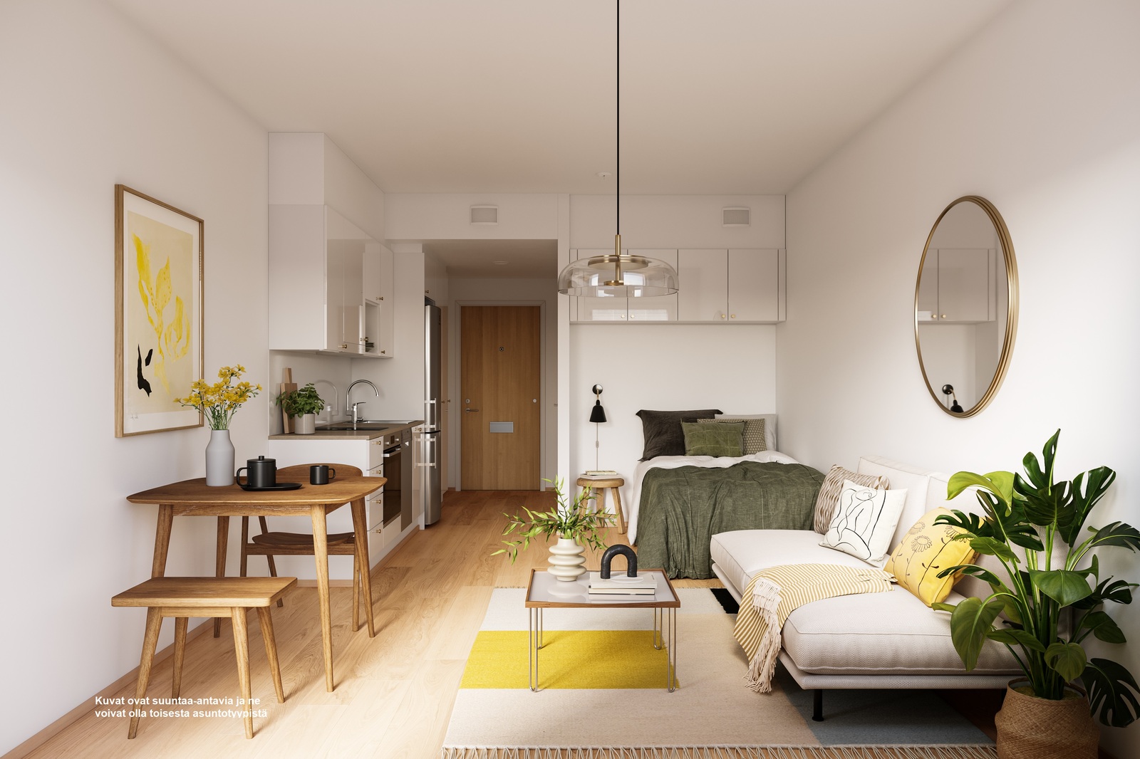Kuvat ovat suuntaa-antavia havainnekuvia ja valokuvat voivat olla vastaavasta asunnosta toisessa rapussa, kerroksessa tai pohjan peilikuvasta – tutustuthan pohjaratkaisuun ja markkinointiesitteeseen huolellisesti. Pohjakuvien mitat ovat suuntaa-antavia ja lopulliset mitat tulee tarkastaa paikan päällä. Asunto vuokrataan kalustamattomana.