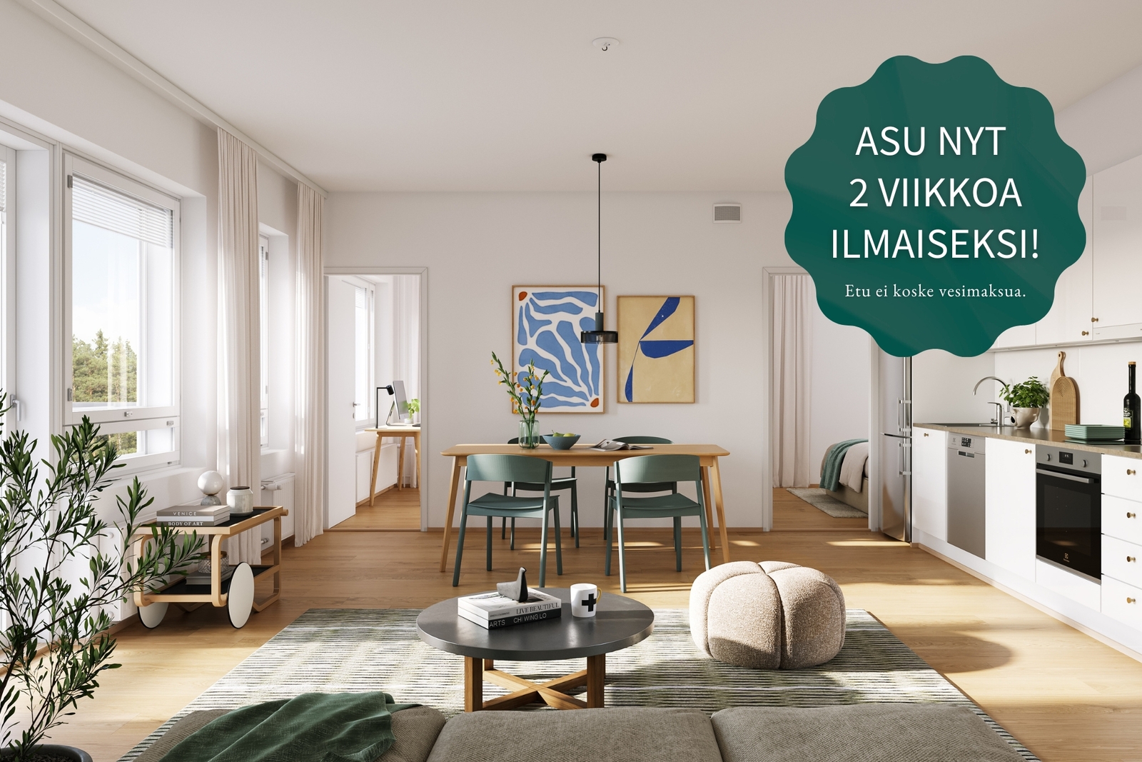 Kampanjaehdot: Kampanja voimassa Juli Tesoman Vuokko 3h-4h asuntoihin, joihin solmitaan toistaiseksi voimassa oleva vuokrasopimus 12 kuukauden minimiasumisajalla. Jotta voit hyödyntää kampanjamme, asunnon vuokraus on tehtävä verkkosivuillamme 6.10.-31.10.2025 välisenä aikana. Vuokrauksen yhteydessä maksettu ennakkovuokra vähennetään kolmannelta täyden kuun vuokralaskulta ja kampanjaetu vähennetään neljänneltä täyden kuun vuokralaskulta. Mikäli sopimus on kestänyt alle 4 kuukautta, kampanjaetua ei hyödynnetä eikä sitä hyvitetä vuokralaskulta. Mikäli sopimus irtisanotaan ennen minimiasumisajan päättymistä, aiemmin hyvitetty kampanjaetu laskutetaan viimeisessä vuokralaskussa. Kampanjaetua ei voi hyödyntää aiemmin tehtyihin vuokrasopimuksiin eikä etua voi yhdistää muihin kampanjoihin. Kampanjaetua ei voi hyödyntää sopimusmuutoksissa, asunnonvaihdoissa Juli-kodista toiseen minimiasumisaikana tai jos vuokranmaksu ei ole ajan tasalla. Kampanjaetu ei koske vesimaksua.