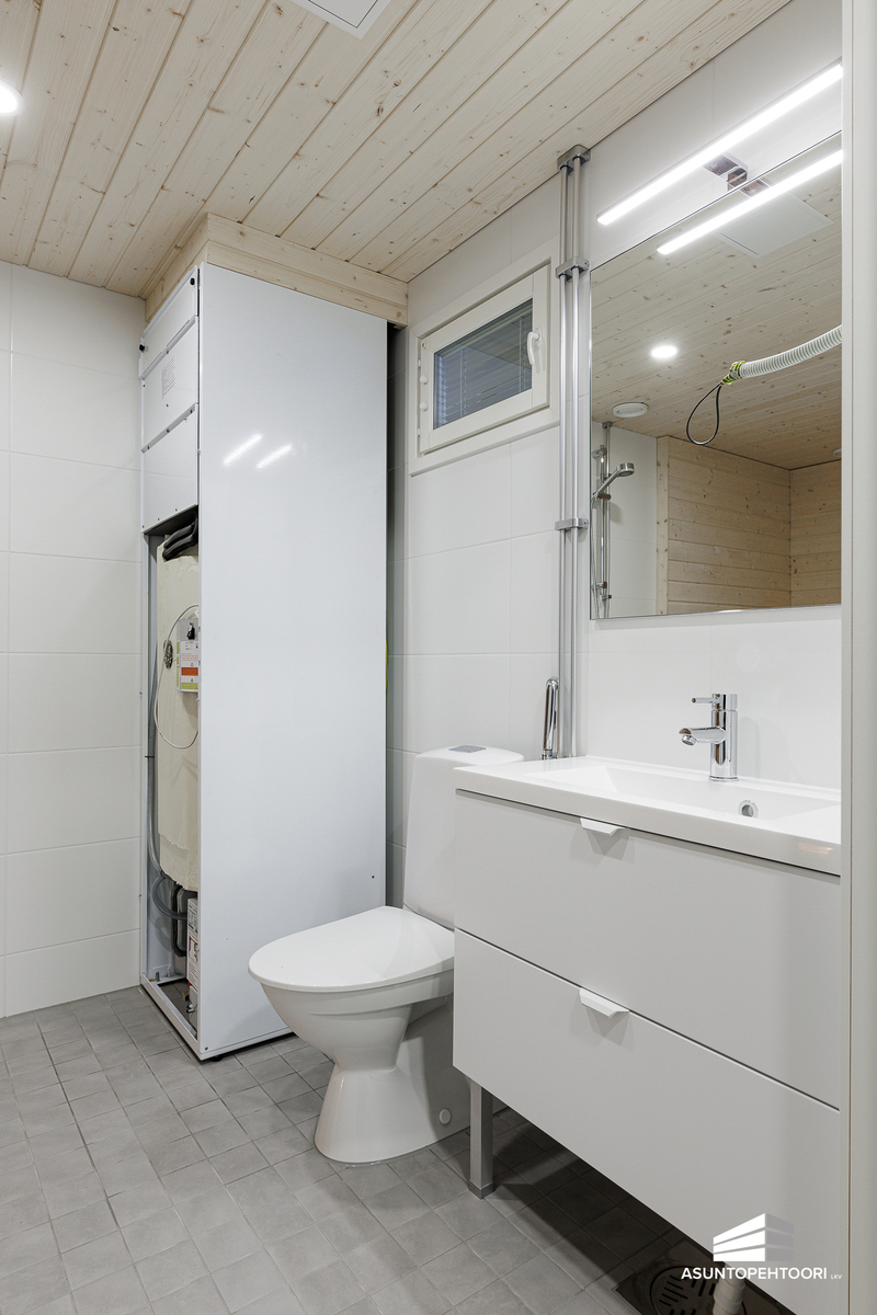 Asunnon lämmitysmuotona toimii vesikiertoinen lattialämmitys, jonka lämpötilaa säätää kylpyhuoneeseen sijoitettu energiatehokas poistoilmalämpöpumppu. Poistoilmalämpöpumppu huolehtii myös asunnon ilmanvaihdosta, joten pystyt itse säätämään lämpötilan mieluiseksi vuodenajasta riippumatta ja vaikuttamaan tätä kautta myös asumiskustannuksiin. Taloyhtiön katolle tullaan sijoittamaan myös aurinkopaneelit, jotka tuottavat energiaa taloyhtiön, ja mahdollisuuksien mukaan myös asukkaiden, käyttöön.