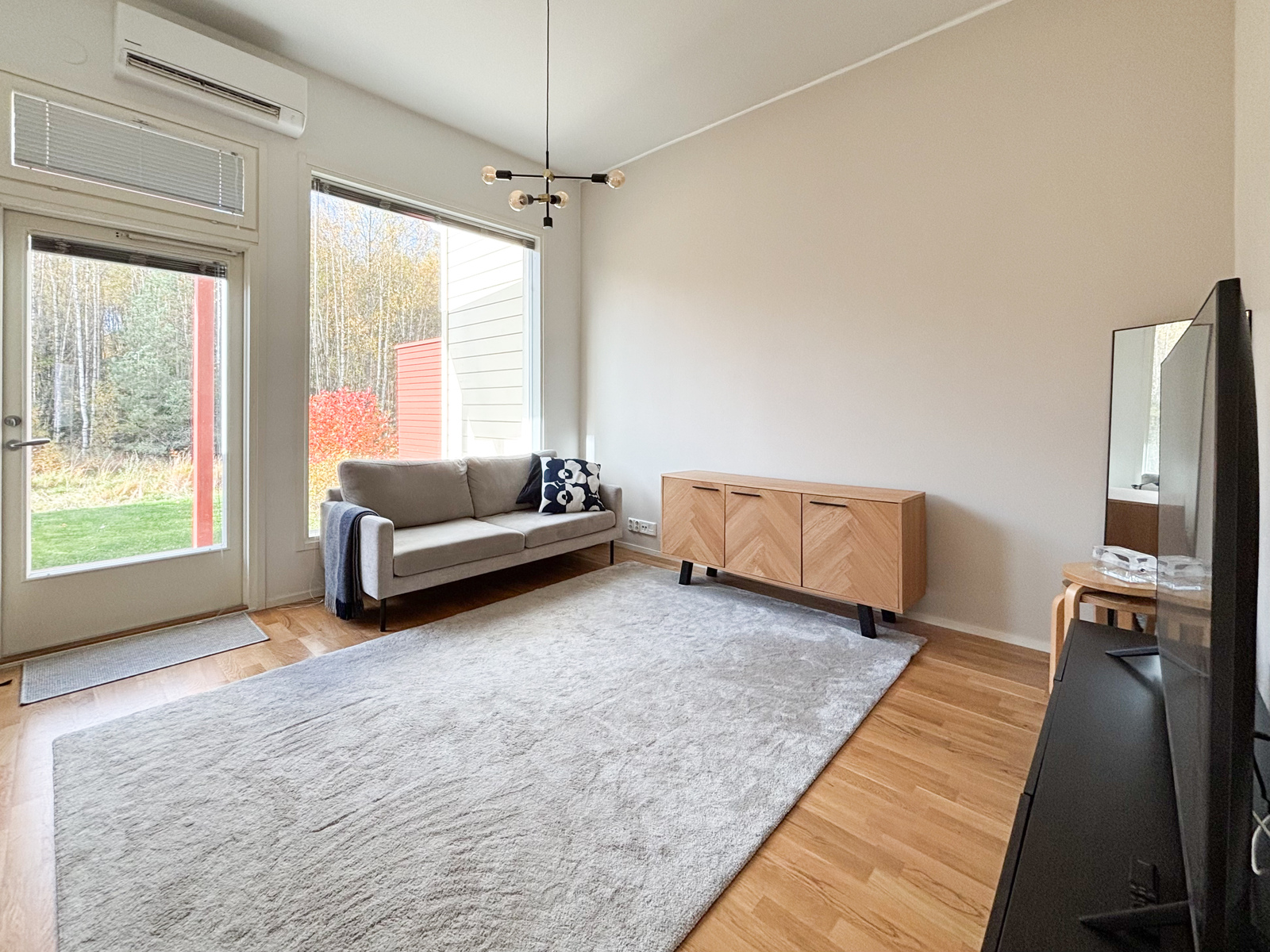 Kodin sydän on valoisa olohuone, josta on suora käynti omalle terassille ja pihalle. Oma piha tarjoaa mukavasti tilaa oleskeluun tai vaikka kesäpäivän grillailuun. Toimiva avokeittiö yhdistyy olohuoneeseen. Makuuhuoneessa on hyvin säilytystilaa arkea helpottamaan. Asunnossa on myös kylpyhuone, jossa on liitäntä pyykinpesukoneelle. Kesähelteisiin helpotusta tuo viilentävä ilmalämpöpumppu.