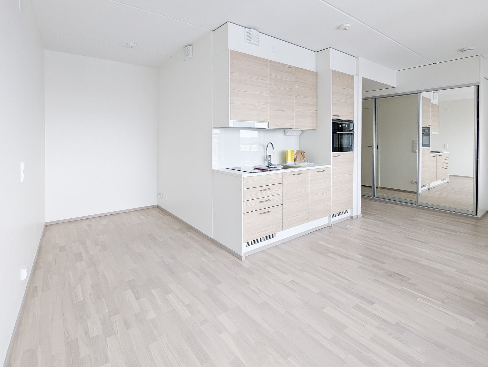 Tämä suuri ja valoisa yksiö tarjoaa loistavat puitteet viihtyisään asumiseen mm. toimivan pohjaratkaisunsa ansiosta! Olohuoneesta erillään on tilava alkovi, minne mahtuu isompikin parisänky. Asunnon seinät ovat raikkaan valkoiset ja lattiat ylellistä parkettia. Modernista keittiöstä löytyy kaikki tarvittava kotikokin tarpeisiin astianpesukoneineen ja induktioliesineen. Tyylikkäästi laatoitetussa, tilavassa kylpyhuoneessa on pesukoneliitäntä ja hyvä tila pesukoneelle. Asumismukavuutta lisäävät suuret ikkunat sekä ranskalainen parveke. Asunnossa on vesikiertoinen lattialämmitys, mikä helpottaa sisustamista, kun pattereita ei ole seinillä tilaa viemässä.