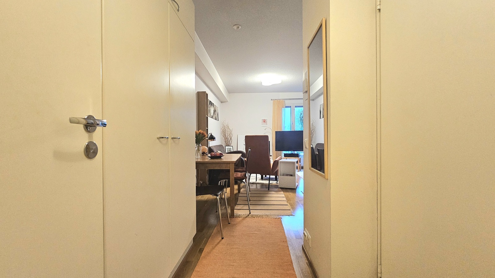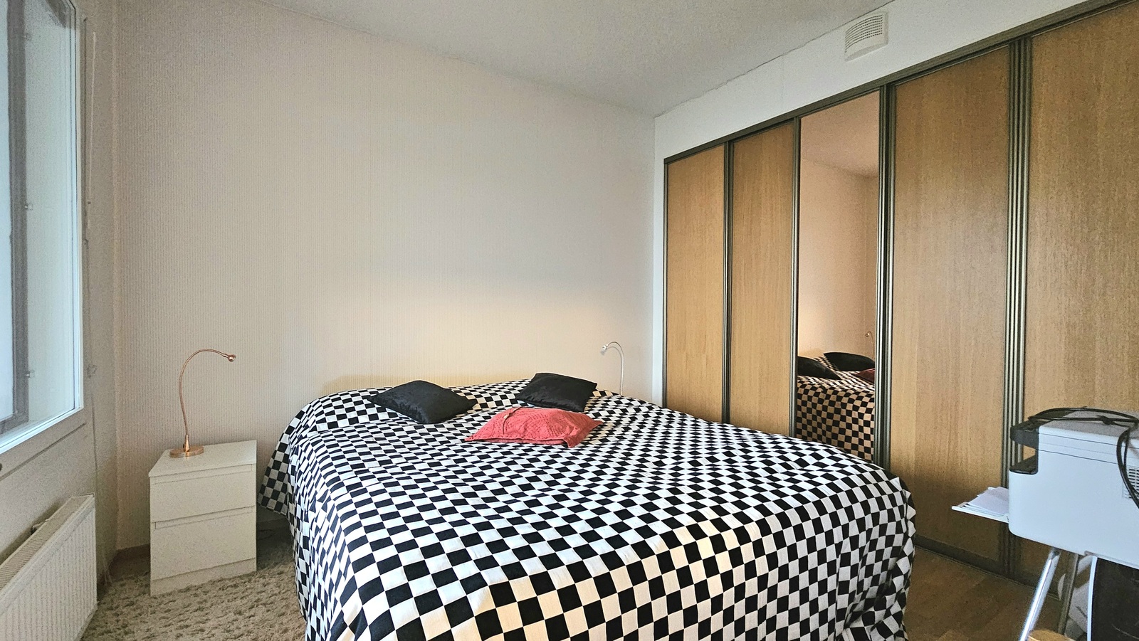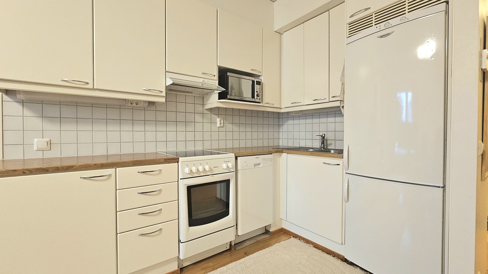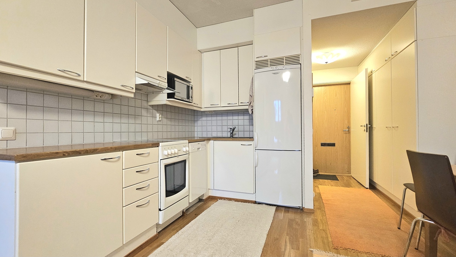 Asunnossa on tilava olohuone, joka yhdistyy avokeittiöön, luoden avaran ja toimivan oleskelutilan. Makuuhuoneessa on runsaasti tilaa sekä liukuovikaapit, jotka tarjoavat erinomaiset säilytysratkaisut.