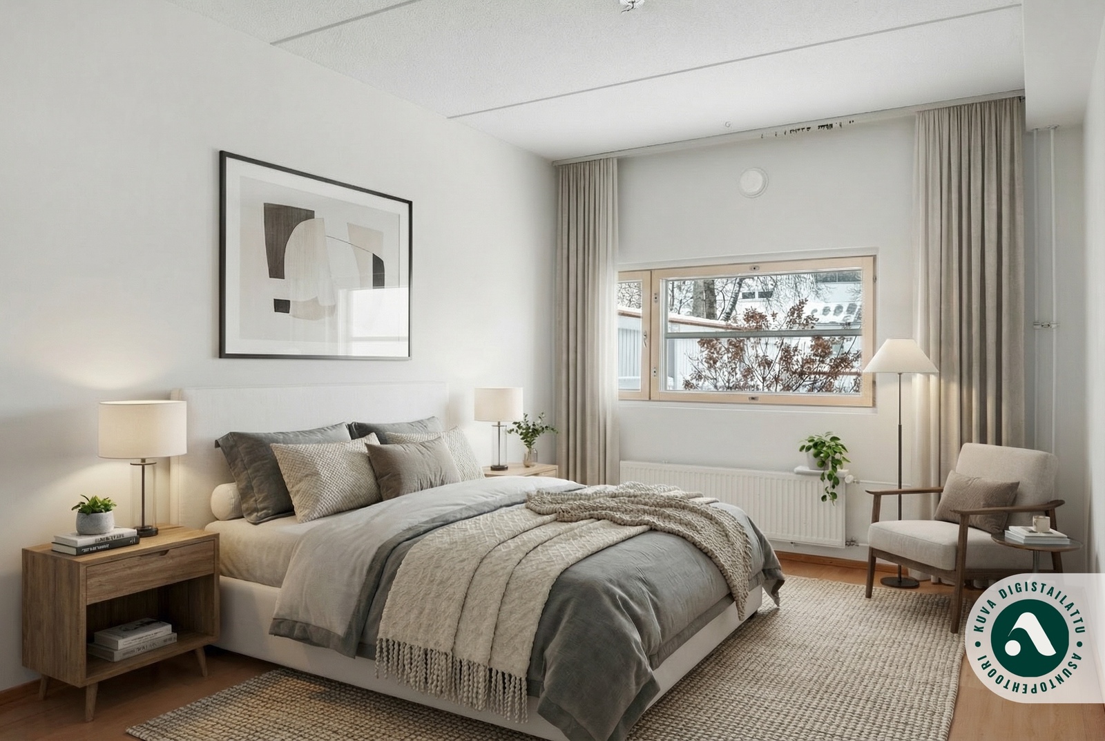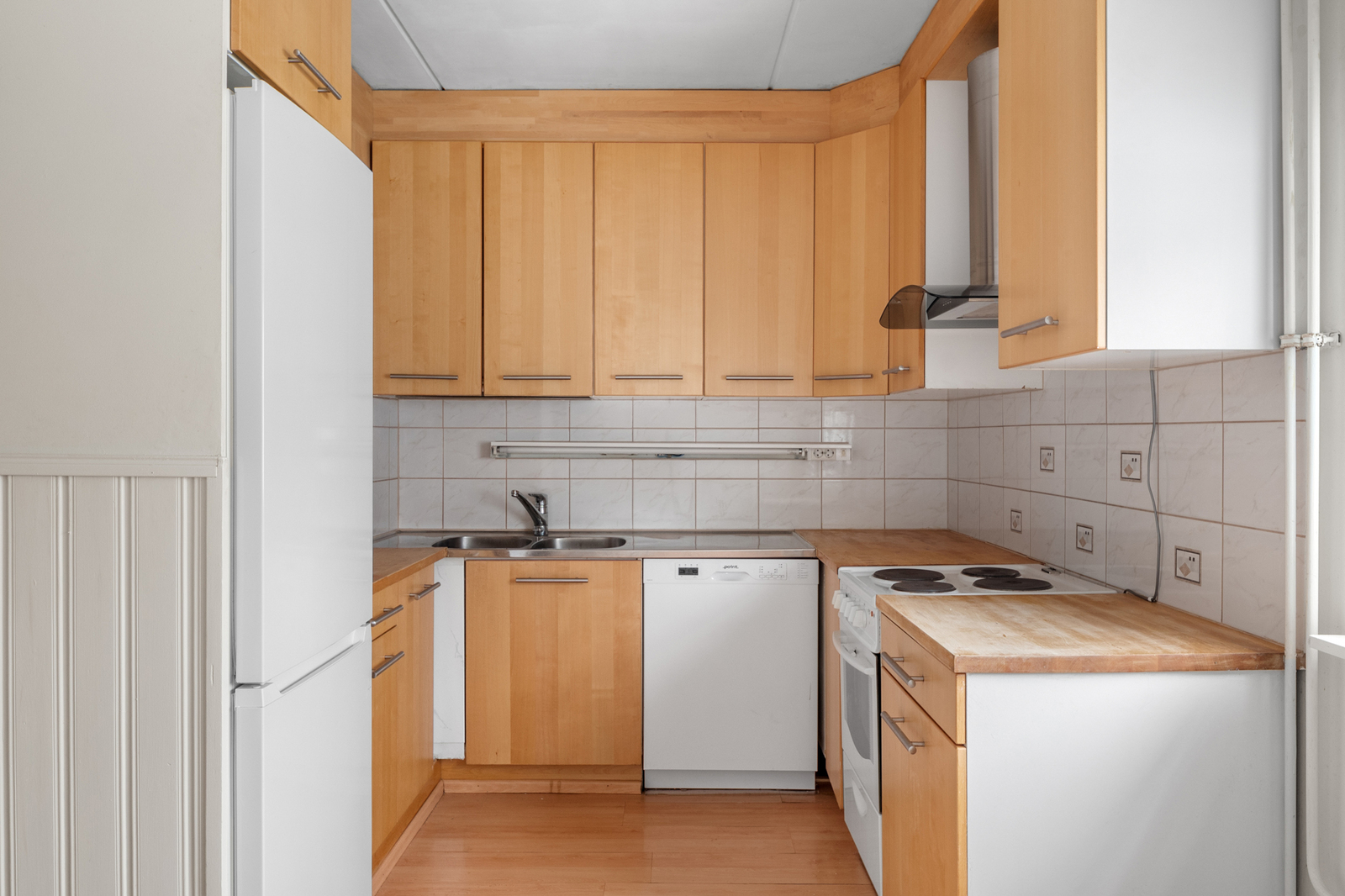 Kodin tilavat huoneet mahdollistavat joustavat ratkaisut niin pienelle perheelle, pariskunnalle kuin etätyötä tekevällekin. Heti sisään tultaessa vasemmalta löytyy vaatehuone ja oikealta hyvin mitoitettu keittiö, jossa on runsaasti laskutilaa. Keittiön ikkunan eteen mahtuu hyvin myös suuri ruokapöytä. Makuuhuoneet on eroteltu kätevästi eri puolille kotia ja isosta eteisestä pääsee sujuvasti kaikkiin huoneisiin. Kylpyhuone on remontoitu taloyhtiön toimesta vuonna -2017.