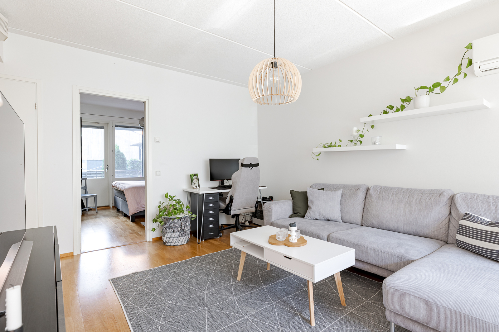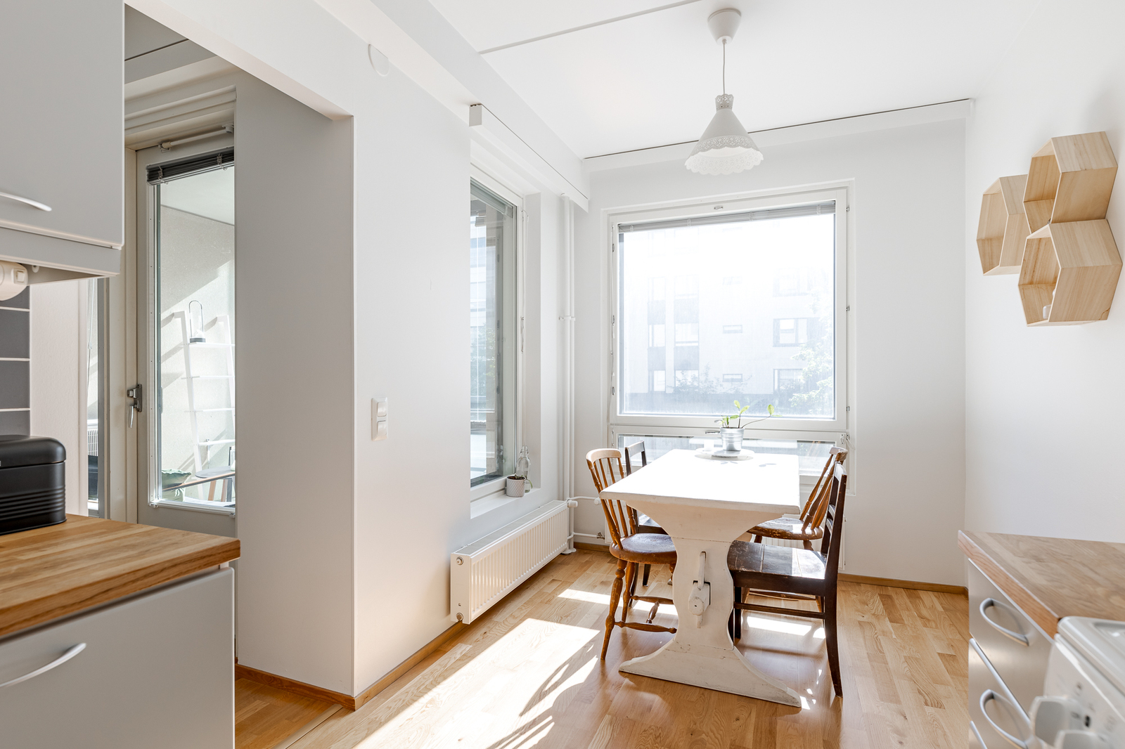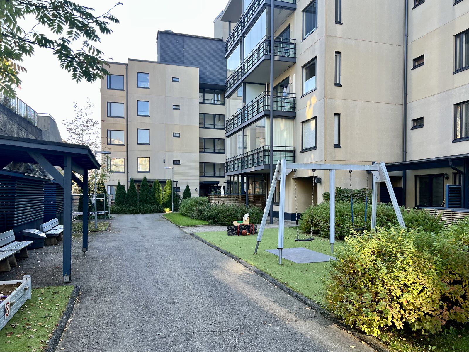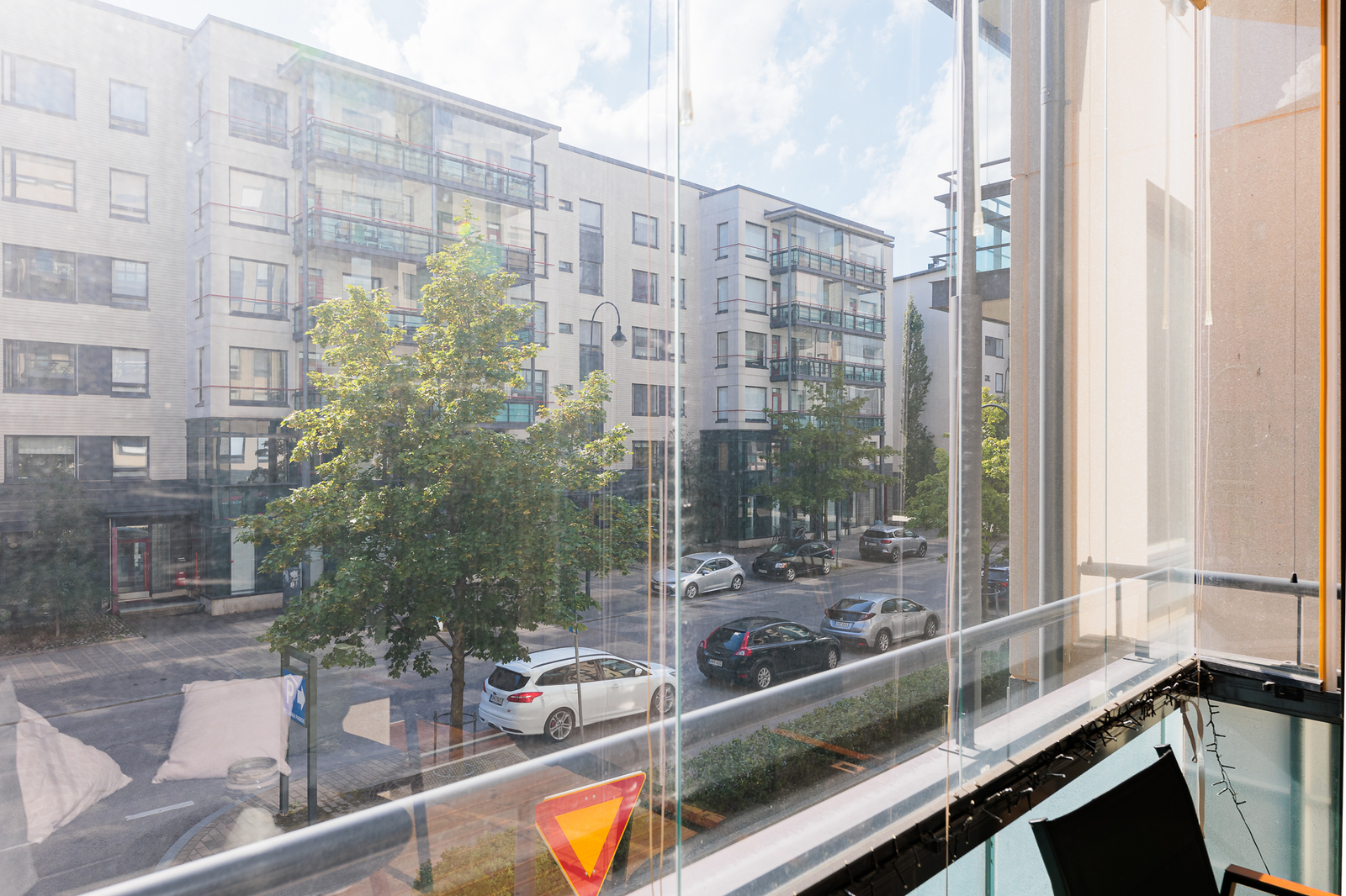 Tämän asunnon erikoisuutena on, että siitä löytyy sekä iso lasitettu parveke että tilava monien mahdollisuuksien asuntopiha rauhalliselta ja suojaisalta sisäpihalta. Tämän tilavan kaksion pohjaratkaisu on toimiva ja avara. Erillinen wc ja oma sauna tuovat pientä luksusta asumiseen.
