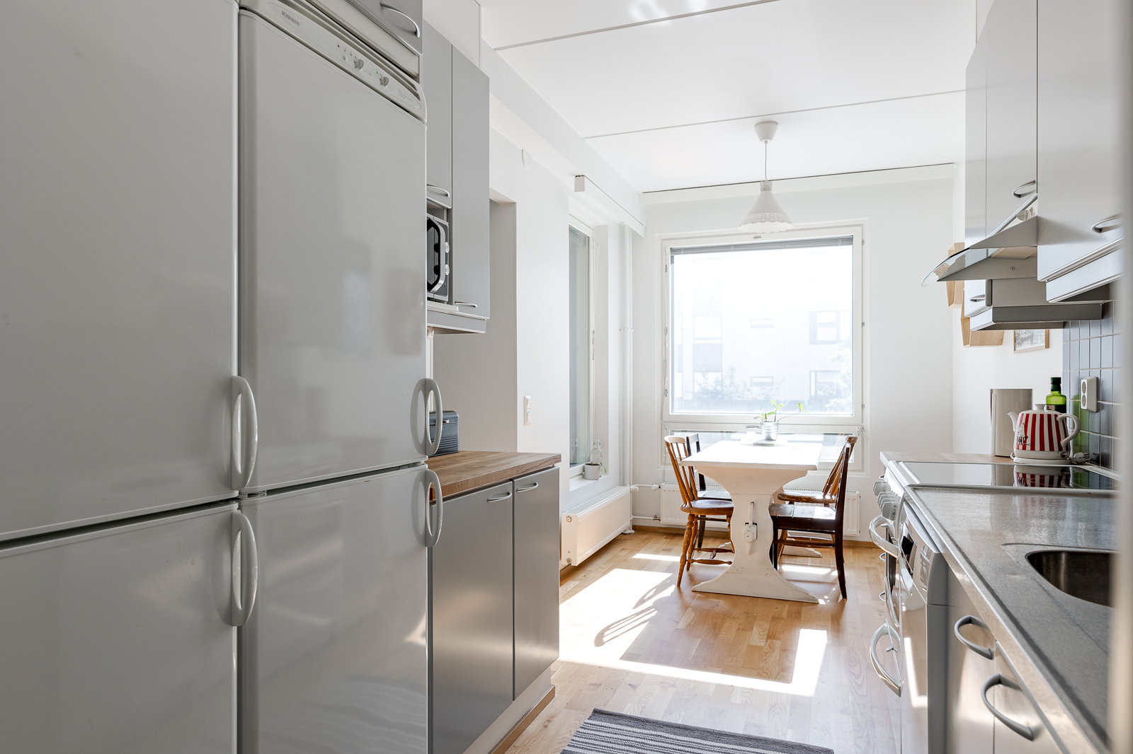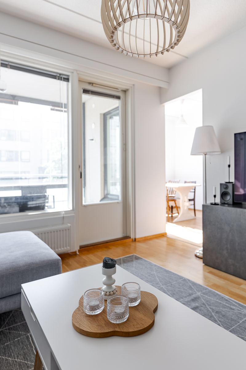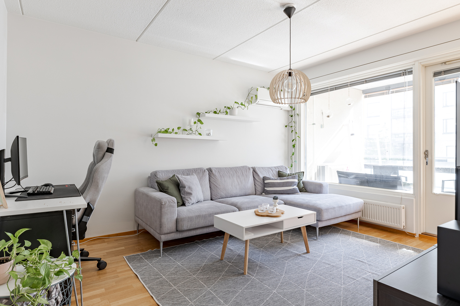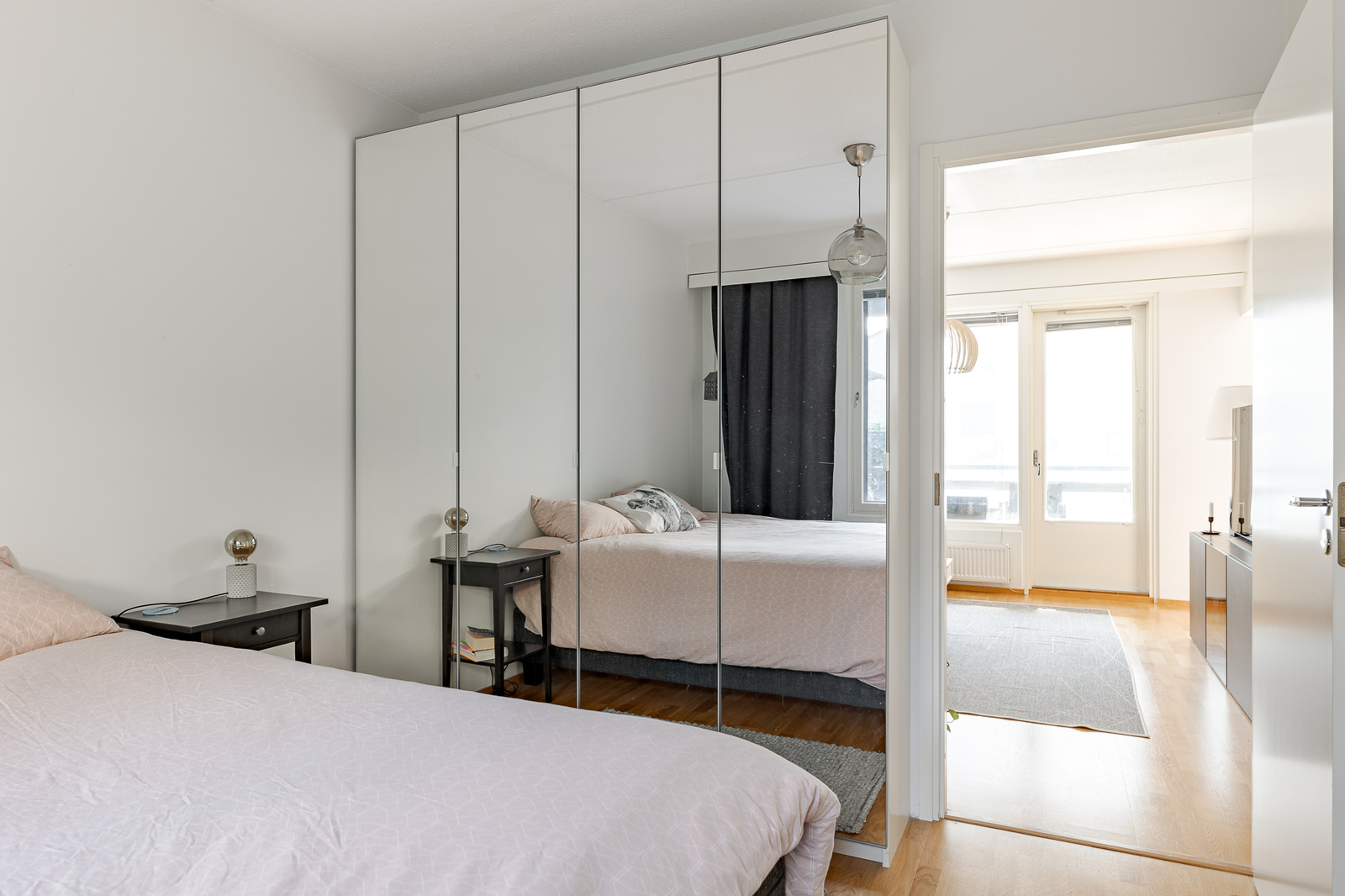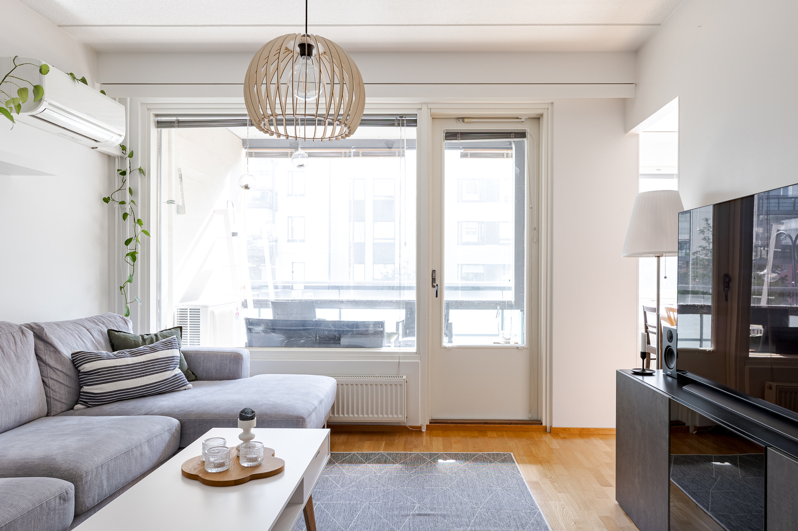 Tämän asunnon erikoisuutena on, että siitä löytyy sekä iso lasitettu parveke että tilava monien mahdollisuuksien asuntopiha rauhalliselta ja suojaisalta sisäpihalta. Tämän tilavan kaksion pohjaratkaisu on toimiva ja avara. Erillinen wc ja oma sauna tuovat pientä luksusta asumiseen.