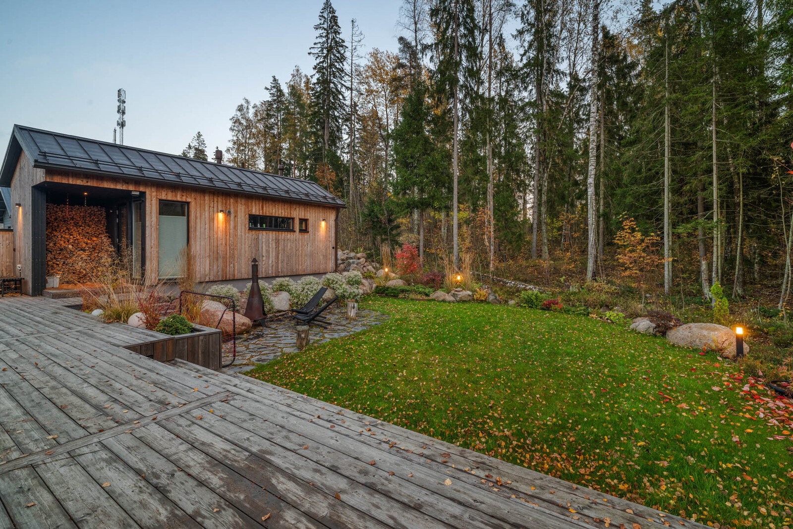 Pihan helppohoitoinen kuntta, tontin kaivuutöistä talteen otetut suuret luonnonkivet ja selkeät oleskelualueet tekevät pihasta saumattoman osan kotia. Erillinen saunarakennus ja Novitek-ulkoporeallas eivät ole vain yksityiskohtia, vaan osa kokonaisuutta.