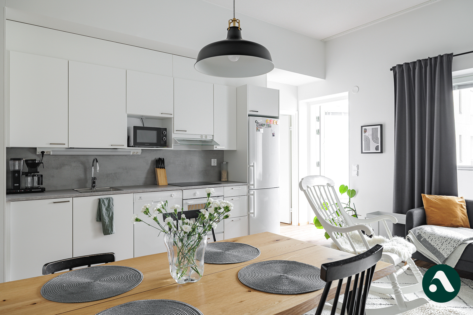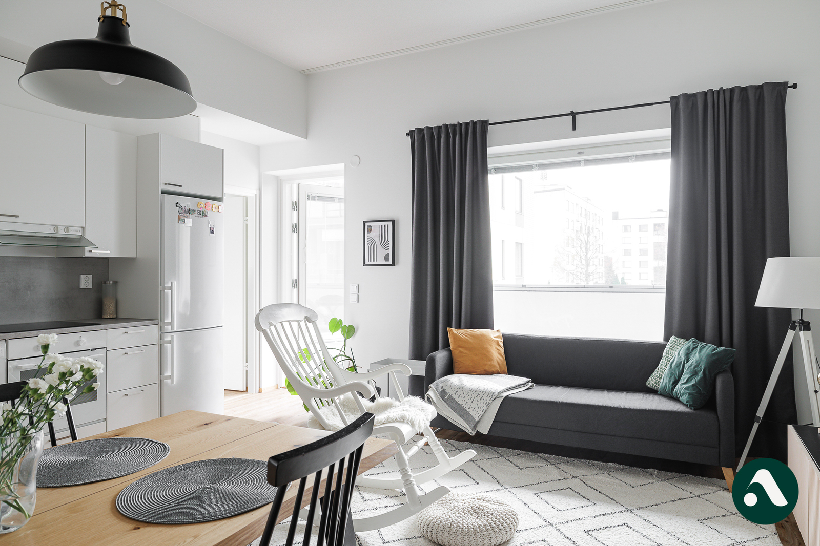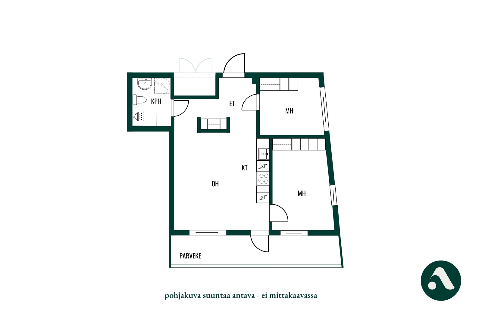 Tässä kauniissa asunnossa on tavallista korkeampi huonekorkeus, mikä tekee asunnosta poikkeuksellisen upean ja tilantunnun aistii heti siään astuessa. Olohuone ja keittiö ovat yhtenäistä, avointa tilaa ja olohuoneesta on kulku valtavalle lasitetulle parvekkeelle.