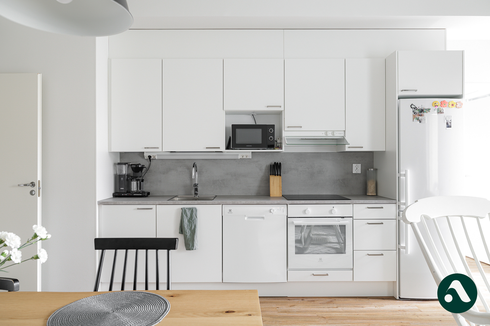 Keittiön kuvaus liesituuletin astianpesukone