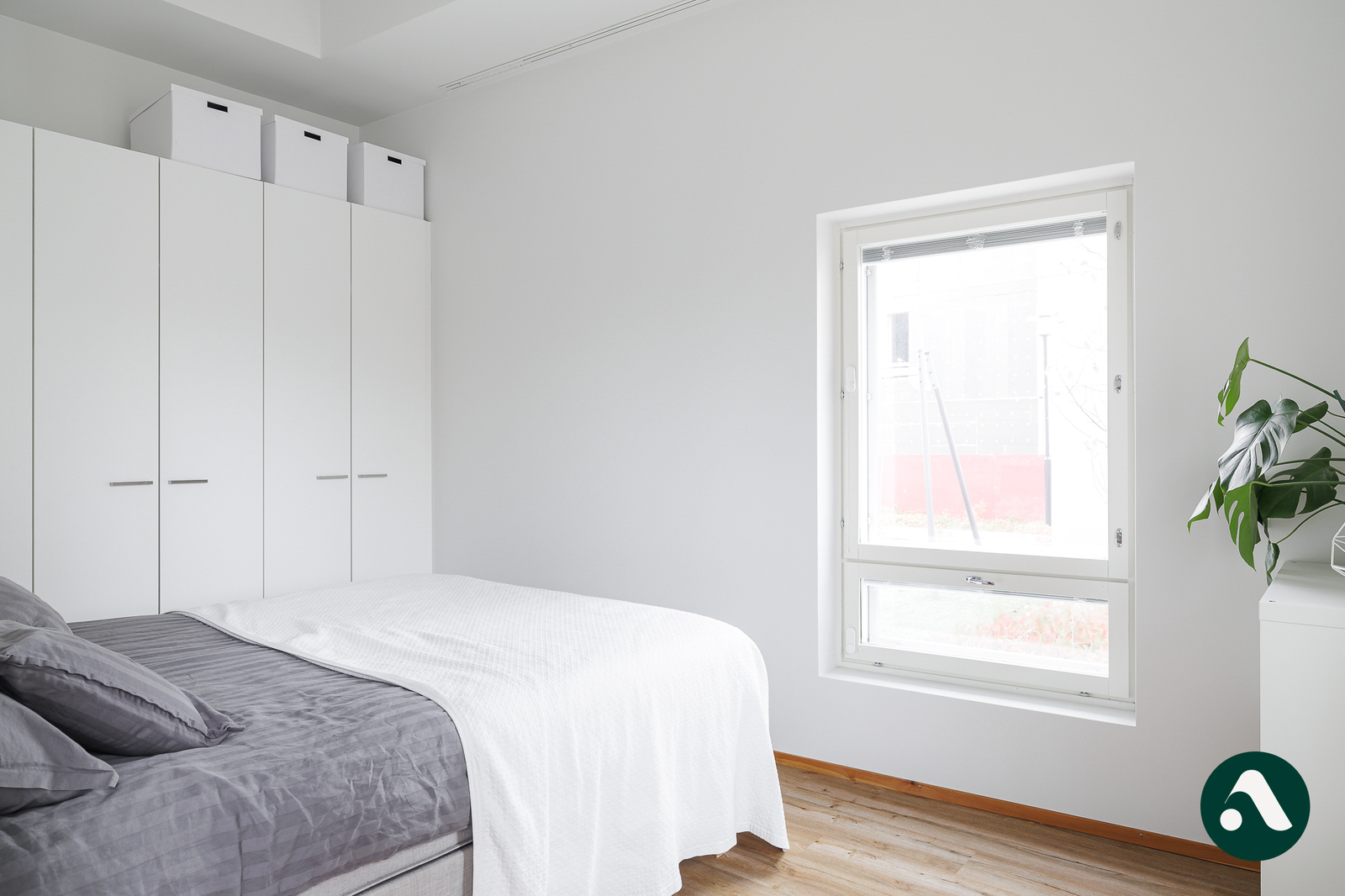 Makuuhuoneita löytyy kaksi ja molemmissa on vaatekaapit. Isompi makuuhuone sijoittuu keittiön taakse ja valo pääsee huoneeseen kahdella seinustalla olevien ikkunoiden kautta. Pienempään makuuhuoneeseen on kulku eteisestä ja sängyn lisäksi huoneeseen mahtuu hyvin myös työpöytä.